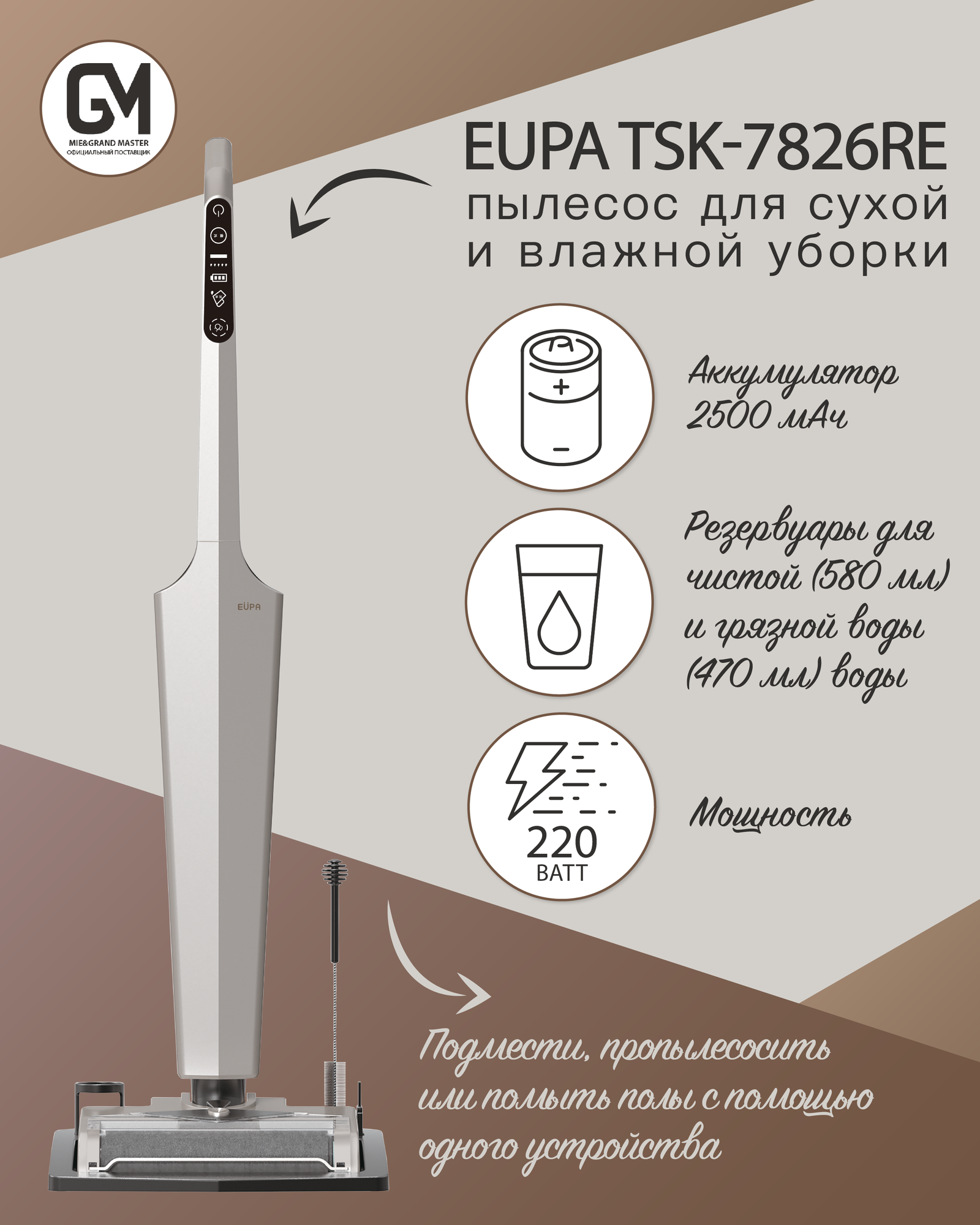 Купить Вертикальный пылесос EUPA New для влажной и сухой уборки Shampagne с доставкой по всей России. Вертикальный пылесос EUPA New для влажной и сухой уборки Shampagne: сравнение цен, характеристики, фото, актуальное наличие и цены.