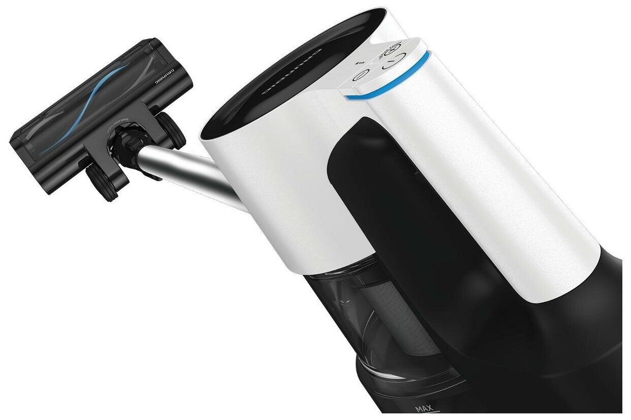 | Дополнительная информация | Индикация работы; Крепление насадок на трубе; Индикатор уровня зарядки; Отключение при перегреве; Крепление на стену; Прорезиненная ручка; Съемные моющиеся фильтры; Индикация режима работы; Индикация разрядки аккумулятора; Микрофильтр; Циклонный фильтр; Моторный фильтр; Турбо режим; Сухая уборка; Электронное управление; Комплектация: Зарядное устройство |