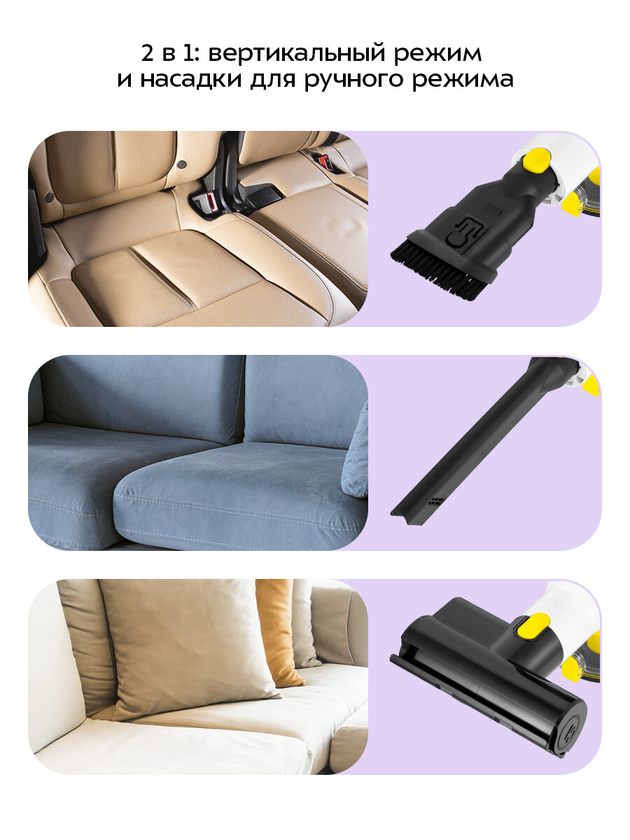 | В комплекте | зарядное устройство, комбинированная насадка, турбощетка, удлинительная трубка/шланг, фильтр тонкой очистки |