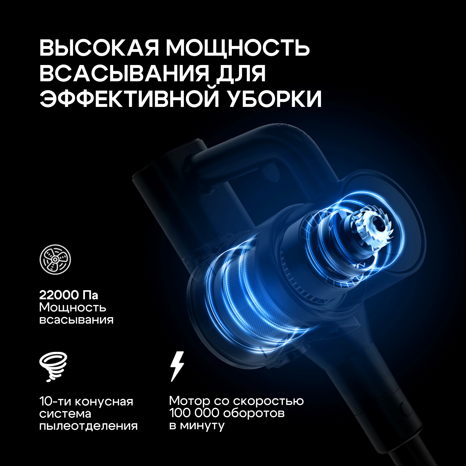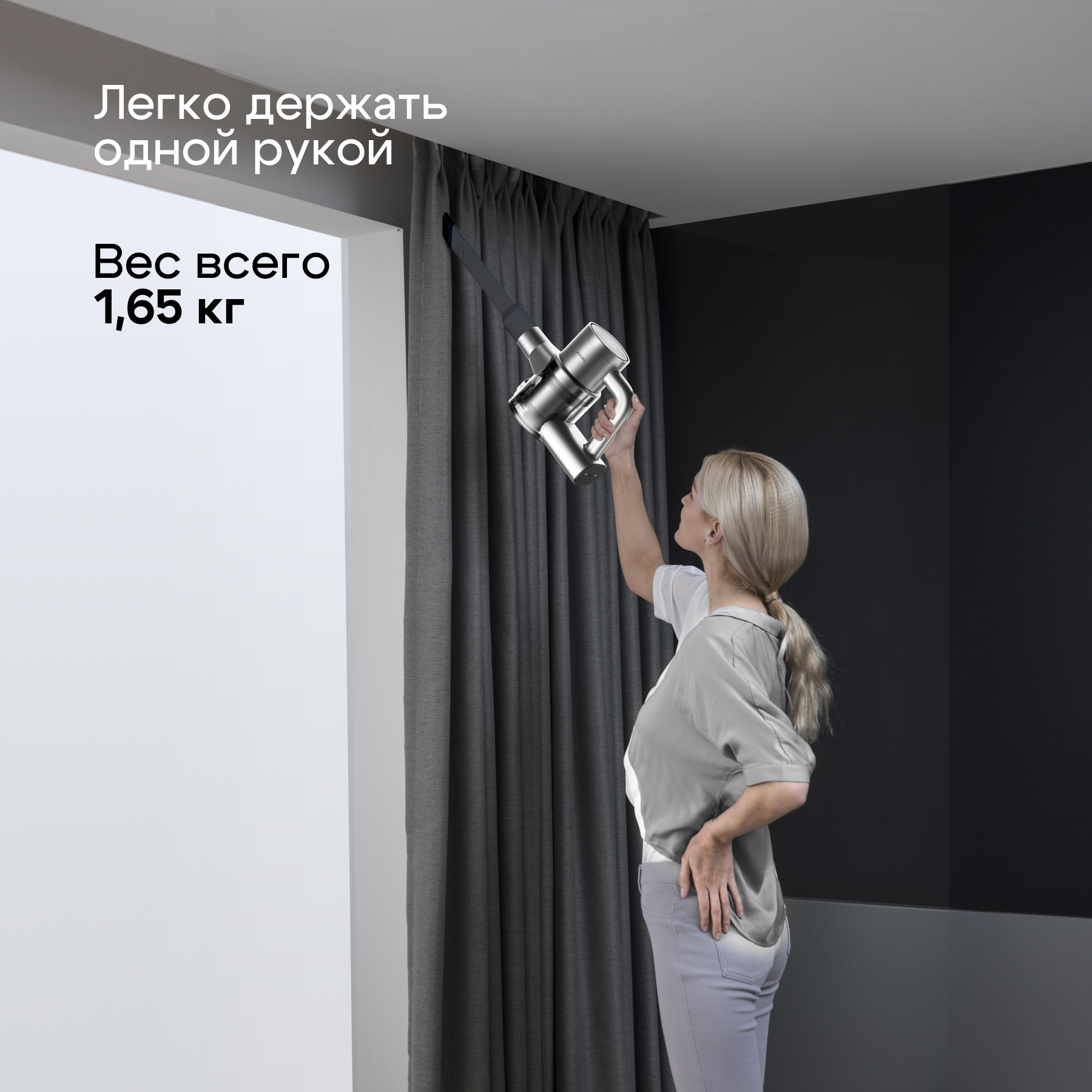 | Дополнительная информация | Дисплей: Цветной OLED-дисплей с отображением уровня заряда, режима работы и уведомлений о состоянии пылесборника. Технология: Циклоническая система Multi-Cone для эффективного отделения пыли от воздуха. Бесщеточный двигатель (100 000 об/мин) с увеличенной энергоэффективностью (до 36%). BMS (Battery Management System) для оптимизации работы аккумулятора. Конструкция: Модульная, с возможностью использования как ручного пылесоса для уборки мебели, автомобиля и труднодоступных мест. Уборка: Подходит для твердых полов, ковров, мебели и борьбы с пылевыми клещами. Комплектация: Пылесос, удлинительная трубка, основная щетка, щелевая насадка, щетка для текстиля, настенное крепление, адаптер питания, инструкция. Цвет: Серый (Space Gray) или белый (в зависимости от версии). |