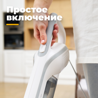 Пылесос обладает высокой мощностью всасывания 19.500Па, что позволяет тщательно удалять пыль, волосы и шерсть домашних животных. Он изготовлен из прочного ABS-пластика и оборудован тройной системой фильтрации, которая защищает двигатель и обеспечивает чистый воздух в помещении.