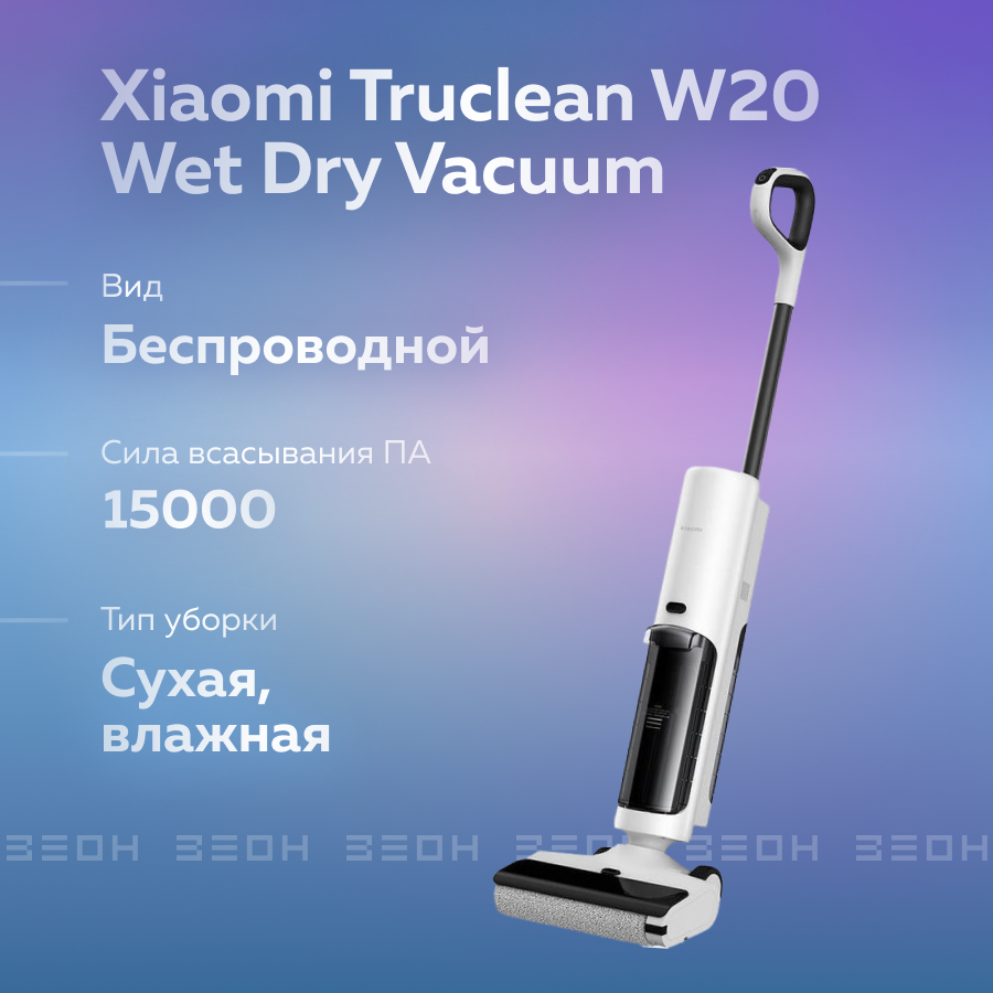 Пылесос Xiaomi Truclean W20 Wet Dry Vacuum сочетает в себе инновационные технологии и стильный дизайн. Модель представлена в бело-черном цвете и имеет артикул BHR8833EU. Этот пылесос идеально подходит для использования как дома, так и в офисе, обеспечивая эффективную уборку различных поверхностей.