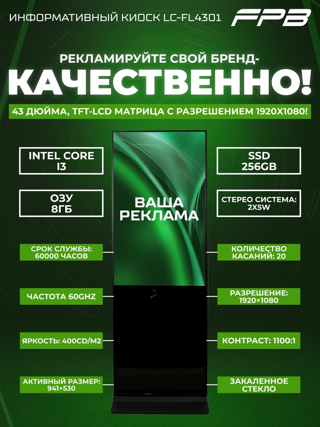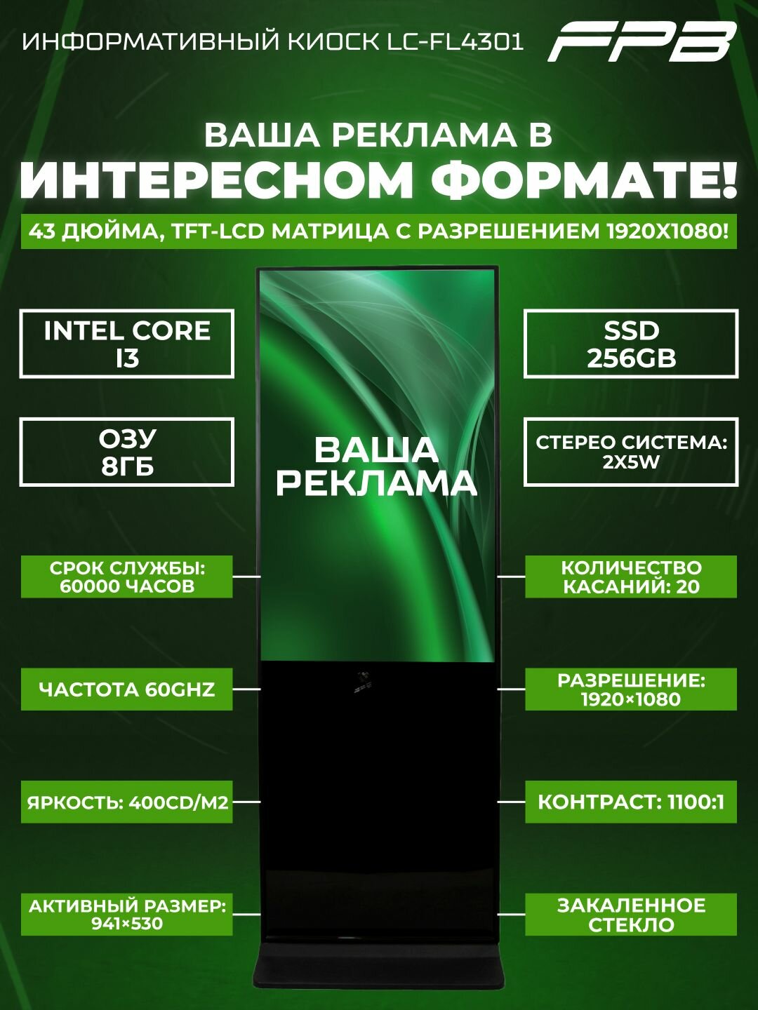 Купить Вертикальный сенсорный инфокиоск FPB LC-FL4301, диагональ 43″ с доставкой по всей России. Вертикальный сенсорный инфокиоск FPB LC-FL4301, диагональ 43″: сравнение цен, характеристики, фото, актуальное наличие и цены.