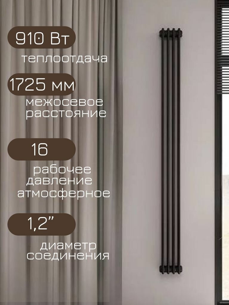 Дизайн, который создает характер: Глубокий черный цвет превращает радиатор в архитектурную доминанту интерьера. Строгие вертикальные линии и изящная трубчатая геометрия создают современный индустриальный акцент — идеально для лофта, минимализма и контемпорари стиля.