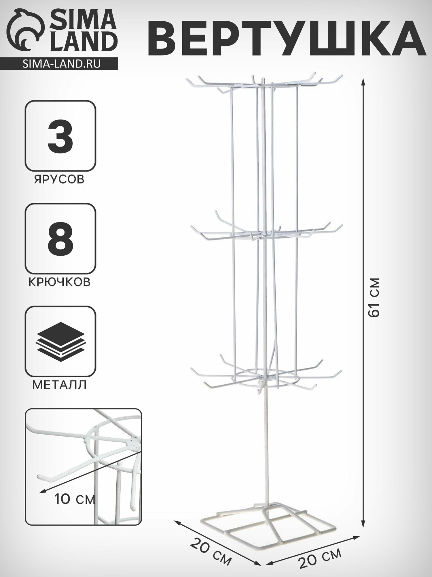 Вертушка, 3 яруса по 8 крючков, 20x20x61 см, белая, вид: вертушки: сравнение цен, характеристики, фото, актуальное наличие и цены.