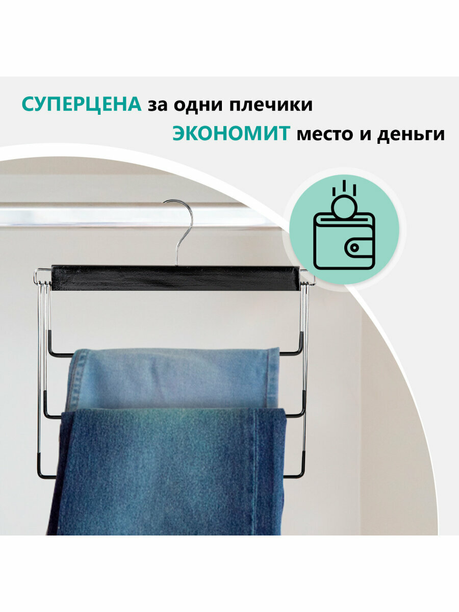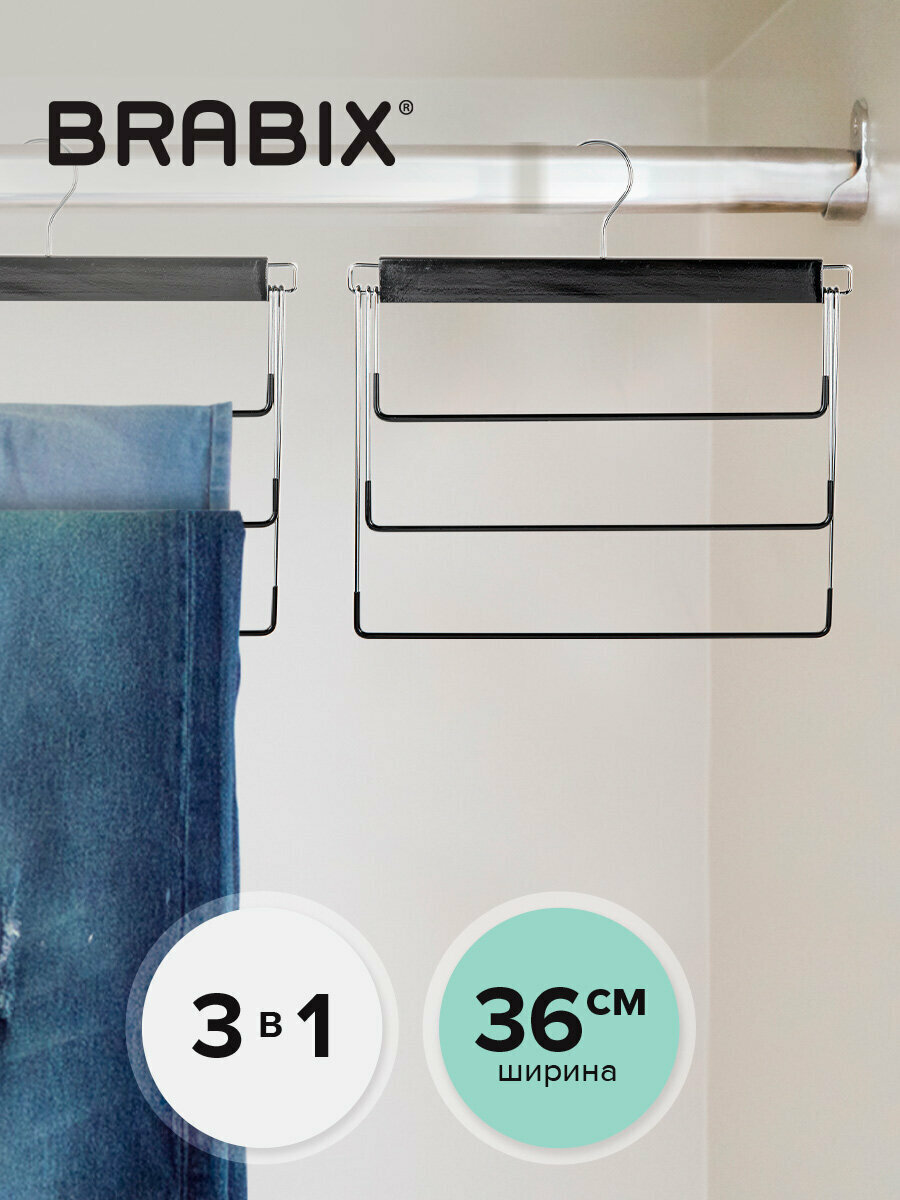Купить Вешалка-плечики для хранения одежды / вещей / брюк / костюма качели 3 секции металлическая, Пвх-покрытие, Brabix, 607473 с доставкой по всей России.