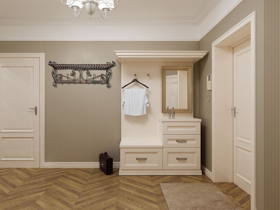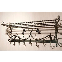 Кованая вешалка Азалия отлично впишется в интерьере как загородного дома, так и квартиры. Сделана из полнотелого квадрата, а не полых трубок, поэтому будет служить Вам долгие годы. Размеры: 75х38х25 см, возможно изготовление других размеров. Цвет античное золото, бронза, серебро или медь (на фото золото) на выбор. Отлично сочетается с нашими коваными обувницами.