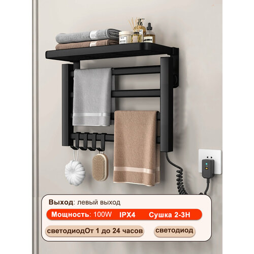 Вешалка для полотенец в ванную, вешалка для кухонных полотенец, электротермальный, c хранилищами,51.5X34CM, Черный: сравнение цен, характеристики, фото, актуальное наличие и цены.