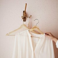 Массив дерева придаст вашему гардеробу ощущение качества. Он достаточно прочный, чтобы нести тяжелую одежду. На вешалки можно добавить корректоры плеч бумеранг для поддержания формы трикотажных изделий и нежных блузок.