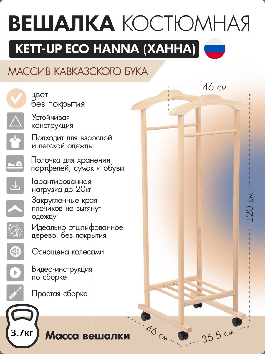 Вешалка костюмная деревянная KETT-UP ECO HANNA (ханна) – это уникальная модель классической деревянной вешалки серии KETT-UP ECO. Вешалка напольная ханна – это абсолютная практичность и универсальность. На сегодня это главный фаворит в линейке напольных вешалок KETT-UP ECO. Ознакомьтесь со всем модельным рядом костюмных вешалок, набрав в поиске «вешалка KETT-UP»