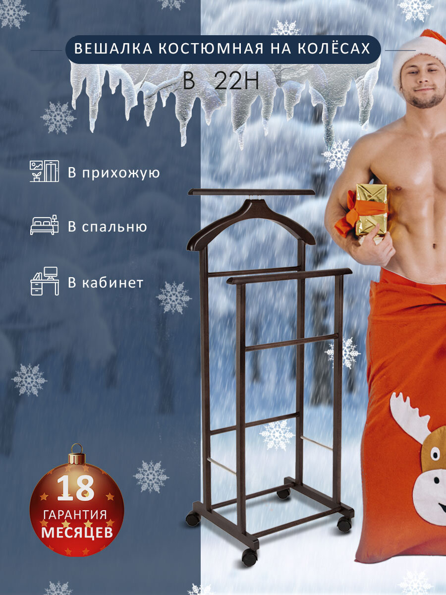 Вешалка костюмная на колесах Мебелик для одежды напольная В 22Н цвет средне-коричневый: сравнение цен, характеристики, фото, актуальное наличие и цены.