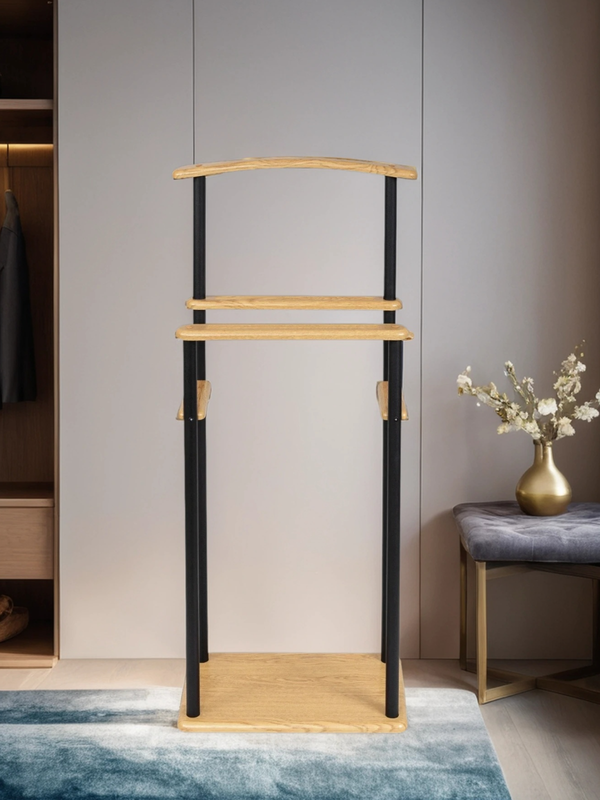 Вешалка напольная для одежды Дора костюмная металлическая МДФ цвет светлый дуб: сравнение цен, характеристики, фото, актуальное наличие и цены.