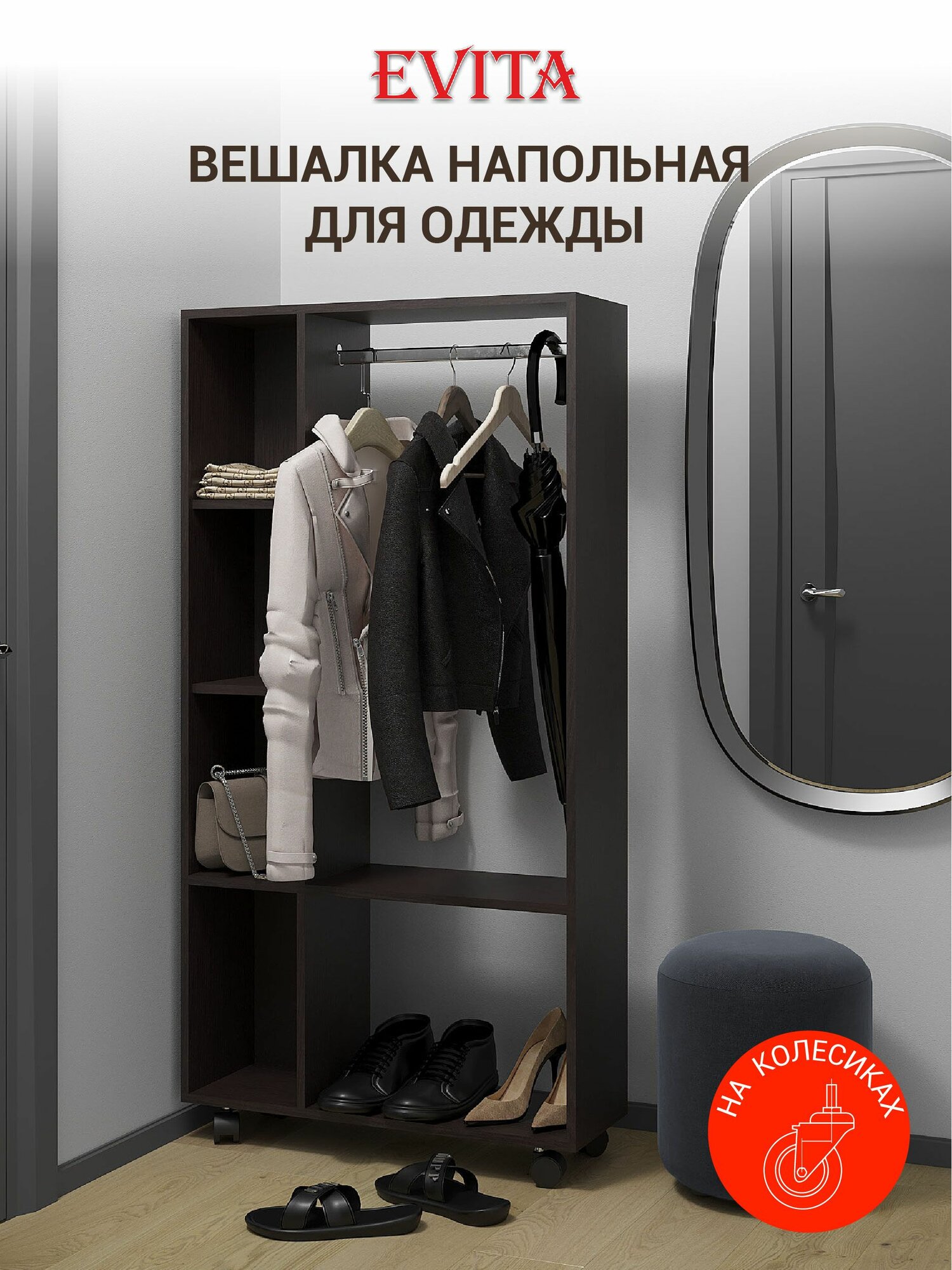 Купить Вешалка напольная для одежды на колесиках Венге / шкаф для одежды с доставкой по всей России. Вешалка напольная для одежды на колесиках Венге / шкаф для одежды: сравнение цен, характеристики, фото, актуальное наличие и цены.