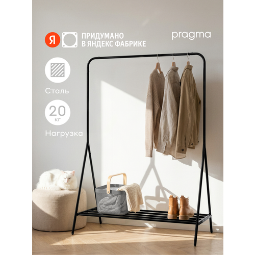 Напольная вешалка для одежды Pragma Anpum* помогает аккуратно хранить вещи в прихожей, спальне или гардеробной. Конструкция также подходит для длинной верхней одежды — пальто, плащей и курток. Ограничители по краям перекладины удерживают плечики на месте, поэтому вешалки не соскальзывают.