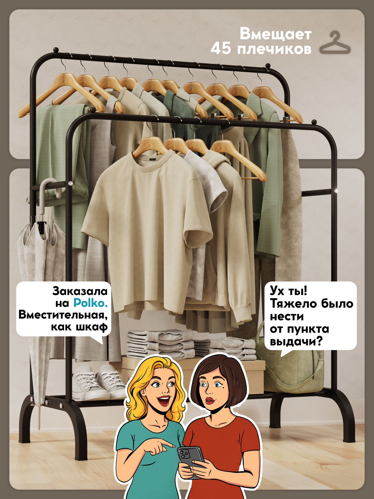 Купить Вешалка напольная для одежды POLKO, рейл, гардеробная, металлическая, открытая стойка для хранения, черная 144x110x57см с доставкой по всей России. Вешалка напольная для одежды POLKO, рейл, гардеробная, металлическая, открытая стойка для хранения, черная 144x110x57см: сравнение цен, характеристики, фото, актуальное наличие и цены.