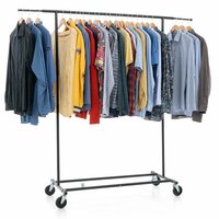 **Характеристики Tatkraft Derek:** - Вешалка с грузоподъемностью до 70 кг. - Прочный и стильный дизайн из нержавеющей стали с покрытием. - Регулируемая длина от 129 до 188 см и регулируемая высота от 146 до 171 см. - 4 крепких колеса для легкости перемещения. - Складывается для удобного хранения. - Монтаж без использования инструментов за 1 минуту.