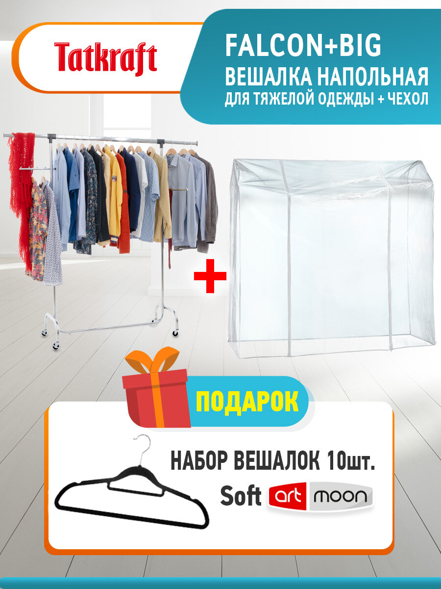Купить Вешалка напольная для тяжелой одежды Tatkraft Falcon + чехол Tatkraft Big + Набор вешалок 10 шт с доставкой по всей России.
