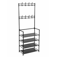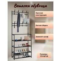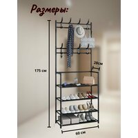 Представляем вашему вниманию многофункциональную металлическую вешалку с обувницей, идеальное решение для удобного хранения вещей в вашем доме. Эта вешалка для верхней одежды в прихожую сочетает в себе стиль и практичность, добавляя нотки стиля лофт в любое пространство. Изготовленная из качественных материалов, она включает надежные крючки, на которых можно повесить верхнюю одежду, а также обувницу на 5 полок, что делает ее особенно удобной. Эта мебель идеально впишется как в коридор, так и в прихожую, балкон, спальню дома, квартиры или дачи, а также в офис. Благодаря функциональности заменит с собой шкаф и комод для обуви. Наша напольная этажерка предлагает отличные возможности для организации вашего гардероба, позволяя хранить обувь и одежду в идеальном порядке. Кроме того, вертикальная открытая вешалка занимает минимум места и становится привлекательным элементом декора. Если вы ищете стойку для обуви и одежды в стиле лофт, то эта модель станет идеальным выбором. Вы также можете использовать настенный стеллаж в гардеробную для дополнительного хранения. Металлический каркас и полки из влагостойкого тканевого материала создают гармоничный образ и обеспечивают функциональность и надежность. Она устойчивая и прочная. Не упустите возможность сделать ваш дом более организованным и стильным! Приобретайте многофункциональную вешалку с обувницей прямо сейчас и наслаждайтесь упорядоченностью вашего пространства!
