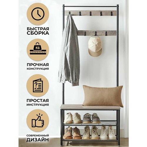- Напольная вешалка с полками универсальное решение для организации гардеробной системы, которое позволяет хранить не только одежду, но и обувь, а так же сумки, шарфы и другие вещи в прихожей или коридоре, в гостинной, спальне и офисе. Современный дизайн в сочетании с удобством использования и высокой надежностью делают этот предмет интерьера прекрасным вариантом для хранения вещей. Конструкция из металлической трубы, регулируемых ножек обеспечивает устойчивость, а ремни против опрокидывания сделают ее более безопасной. Материал ДСП, каркас стальной. Узкий шкаф с этажерками на металлических ножках или напольный стеллаж с деревянной скамьей - прекрасное решение для маленьких комнат, в скандинавском стиле, лофт, современный и других эстетичных интерьеров. Наша мебель напольная, выполненная из металла, позволяет организовать гардероб, дачу и садовую обувницу, дома, коттеджа и гараж. Вам не придется покупать большой или узкий шкафы с вешалками для одежды. Данное изделие можно использовать как место для белья, открытые стеллажи для книг, документов и игрушек, а крючки для верхней одежды. Для каждой комнаты подойдет такая мебель, просто поместите в нее корзины для хранения, органайзеры для инструментов, крючки для шляп и костюмов, полки для полотенец. Мы заботимся о вашей организации и предлагаем качественную мебель для ванной или гостиной, спальни или прихожей и детской. Присоединяйтесь к нашему мебельному магазину и сделайте свой дом еще более уютным и функциональным.