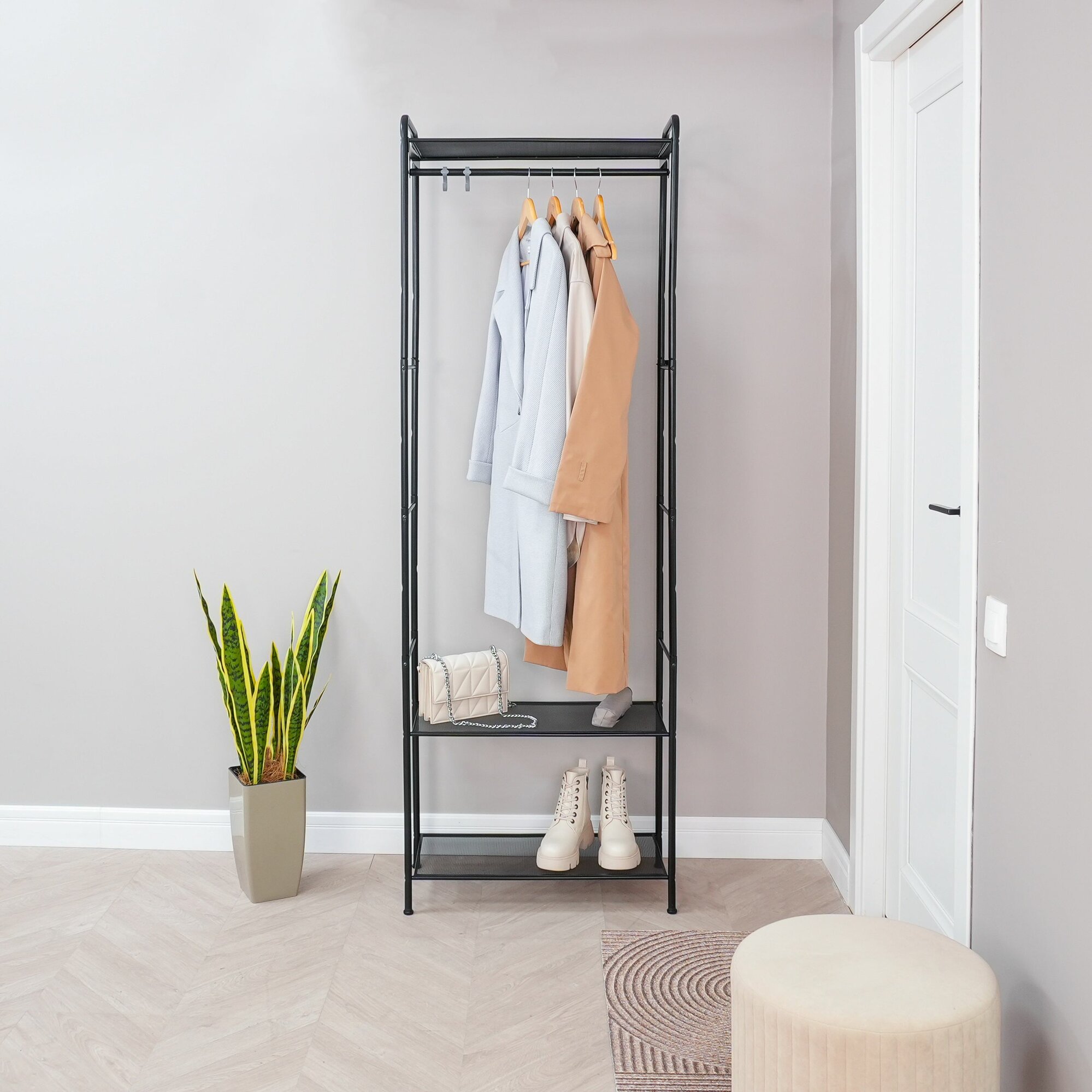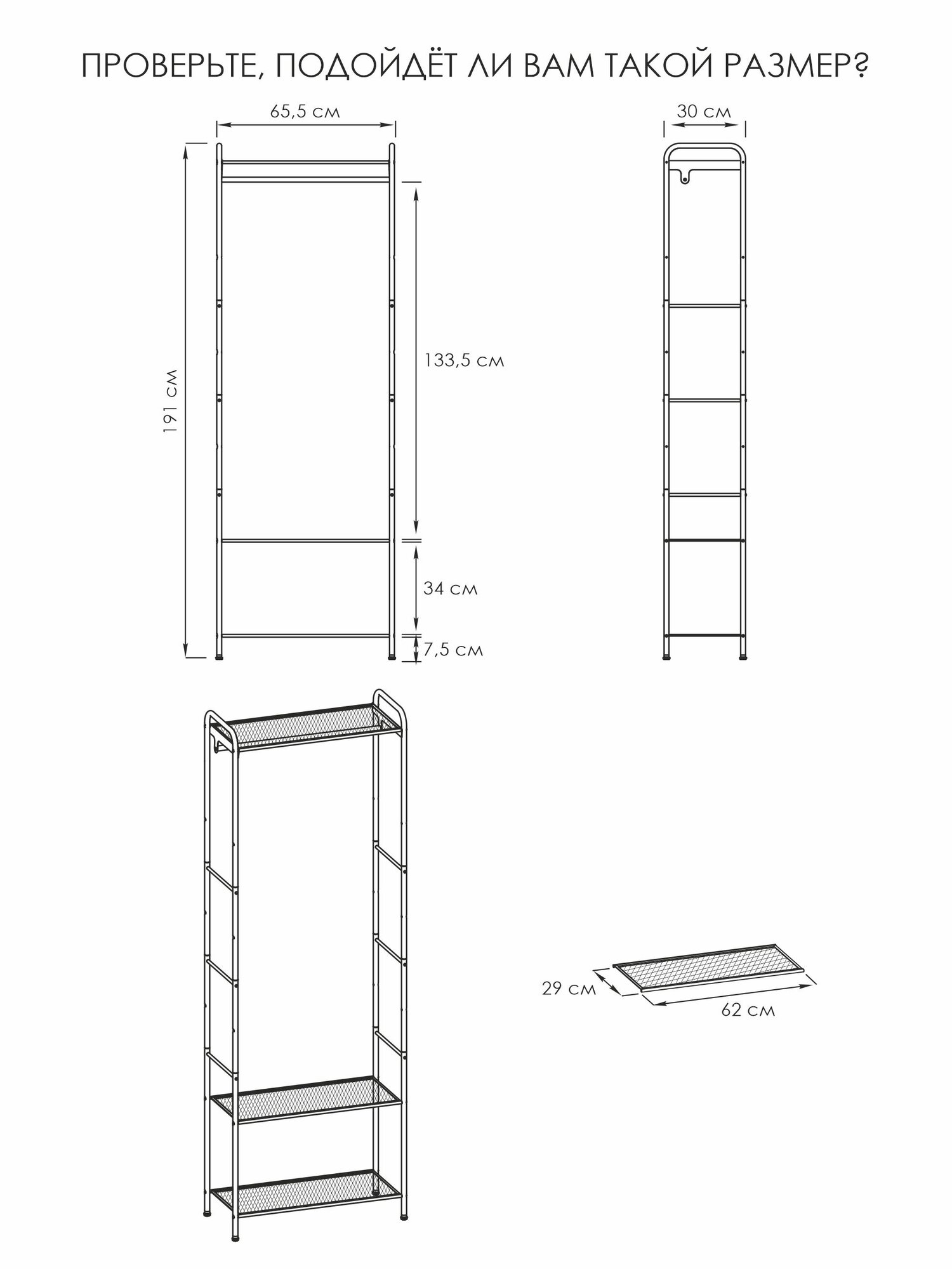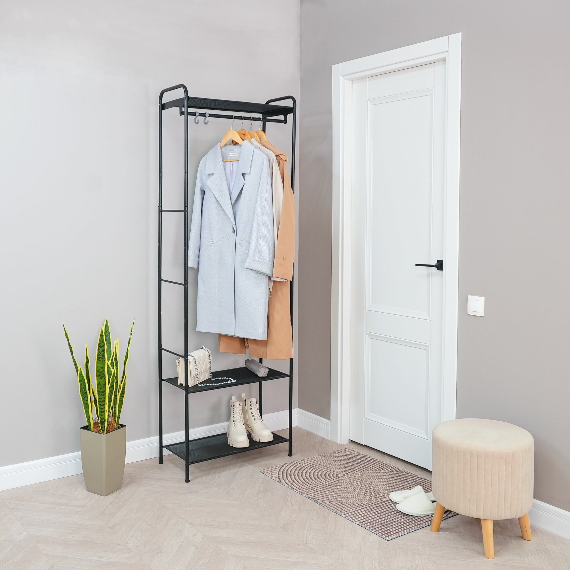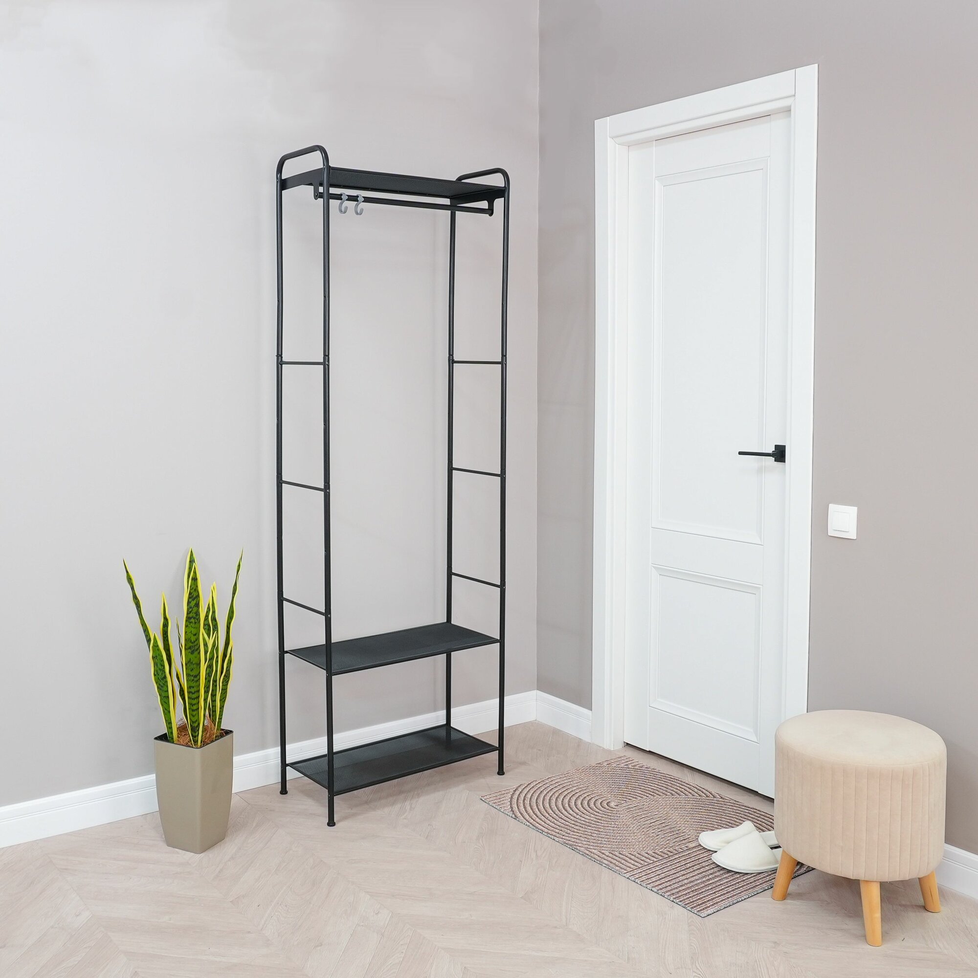 Гардеробная напольная вешалка Монако 23 - это удобное и стильное решение для организации пространства вашей спальни или гостиной. Эта стильная и практичная мебель подойдет для прихожей или коридора, для спальной или детской комнаты, а так-же для ванной и даже магазина. Она имеет стильный и современный вид, который подойдет к любому интерьеру. Вы можете выбрать цвет стальной конструкции, чтобы она гармонично вписывалась в вашу обстановку. Главным преимуществом данной гардеробной системы является ее многофункциональность. Она состоит из напольной вешалки для одежды и полок для вещей и обуви, что позволяет эффективно использовать доступное пространство. На полках и штанге вы сможете разместить большую часть вашего гардероба и разгрузить шкаф. Рейл изготовлен из металлической трубы диаметром 18 мм, что обеспечивает прочность и надежность конструкции. Он способен выдерживать нагрузку до 20 кг, что позволяет повесить на него более 15 плечиков с одеждой. Таким образом, вы сможете хранить свою одежду удобно и безопасно. Благодаря открытой конструкции, вы всегда будете видеть все ваши вещи и сможете легко найти нужное. Полки выполнены из стального листа в мелкую сетку. Этот материал отличается высокой прочностью и долговечностью, поэтому вы можете быть уверены в стабильности и долговечности вашей системы хранения. Каждая полка способна выдерживать нагрузку до 8 кг, что позволяет безопасно разместить на них вашу обувь, аксессуары и другие предметы. Дополнительным преимуществом данного изделия являются регулируемые опоры, которыми оборудованы ножки - стойки. Они позволяют выровнять изделие на полу, а так-же эффективно защищают полы вашего помещения от повреждений и царапин. Система легко собирается и разбирается, поэтому вы можете использовать ее как во временном жилье, так и в постоянном доме. Приобретая Монако 23, вы получаете не только стильное и удобное решение для хранения, но и набор необходимого для сборки инструмента и фурнитуры в комплекте. Это позволит вам с легкостью собрать конструкцию без необходимости дополнительных затрат и поиска дополнительных компонентов. Монако 23 - это удобное и практичное решение для организации пространства в вашем доме или квартире. Заказывая мебель напрямую от производителя ЗМИ, вы можете быть уверены в высоком качестве и прочности предлагаемой продукции. Она поможет вам эффективно организовать хранение одежды, обуви и аксессуаров, а также сделает вашу гардеробную комнату более удобной и просторной. Изделие станет отличным подарком на новый год! При покупке от производителя вы получаете расширенную гарантию на 3 года. Вы будете рады, что сделали правильный выбор!