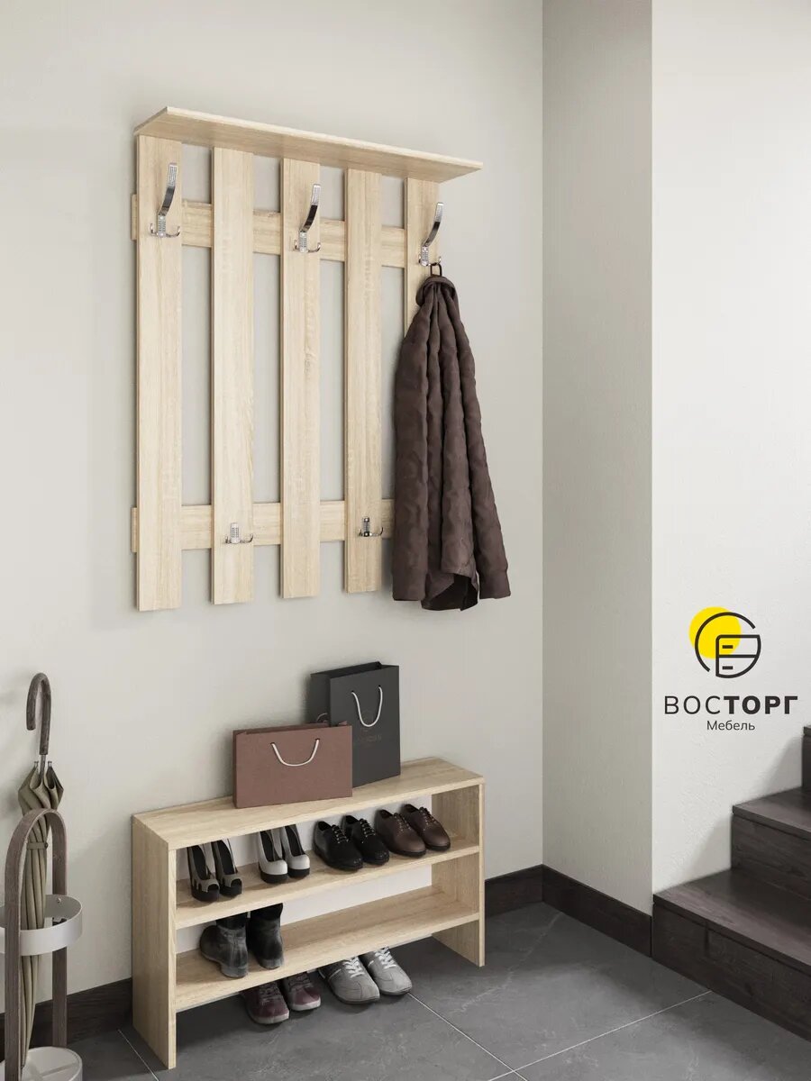 | Дополнительная информация | вешалка, настенная, полки, сонома, ЛДСП, прихожая, коридор, крючки, хромированные, уют, интерьер, универсальная |