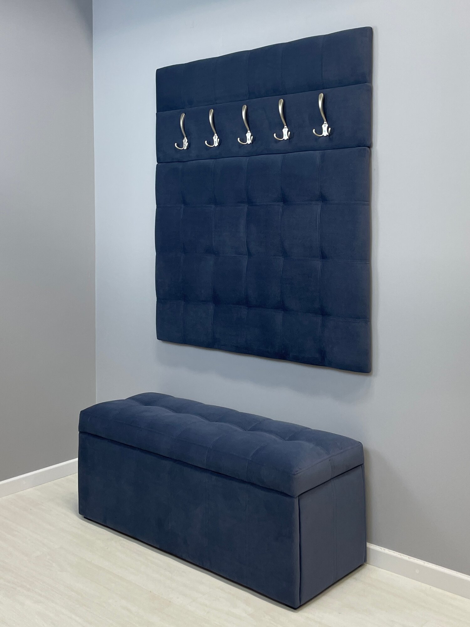 Вешалка настенная для прихожей Лацио 105 (Ткань Микровелюр) выполнена в стиле модерн, с 5 крючками. Поставляется в разобранном виде в картонной упаковке (состоит из 2х элементов, крючки не прикручены). Вешалка настенная для прихожей имеет размеры: ширина 105 см, высота 120 см. Банкетка в комплект не входит и приобретается отдельно. На стену вешалка для одежды крепится с помощью установленных сзади мебельных подвесов . Выполнена из тактильно приятной и мягкой Ткань Микровелюр. Сшита из отдельных элементов и оформлена двойной элегантной строчкой. Вешалка в прихожую настенная идеально подойдет к банкеткам из нашей коллекции. Банкетки с вешалками изготовлены из одного и того же материала. Цвет идентичен. Вешалка настенная идеально подойдет для прихожей, для апартаментов, для дачи.