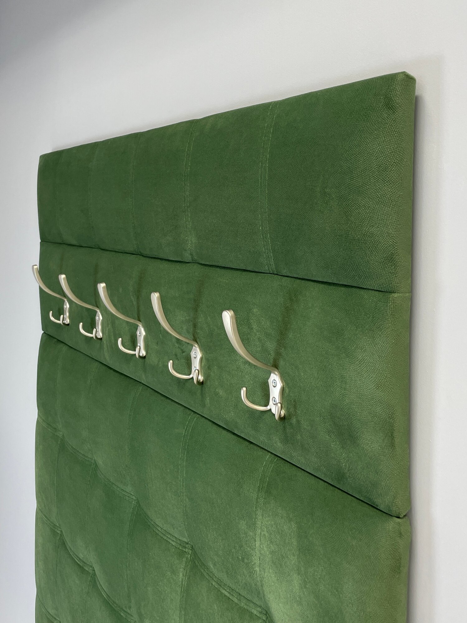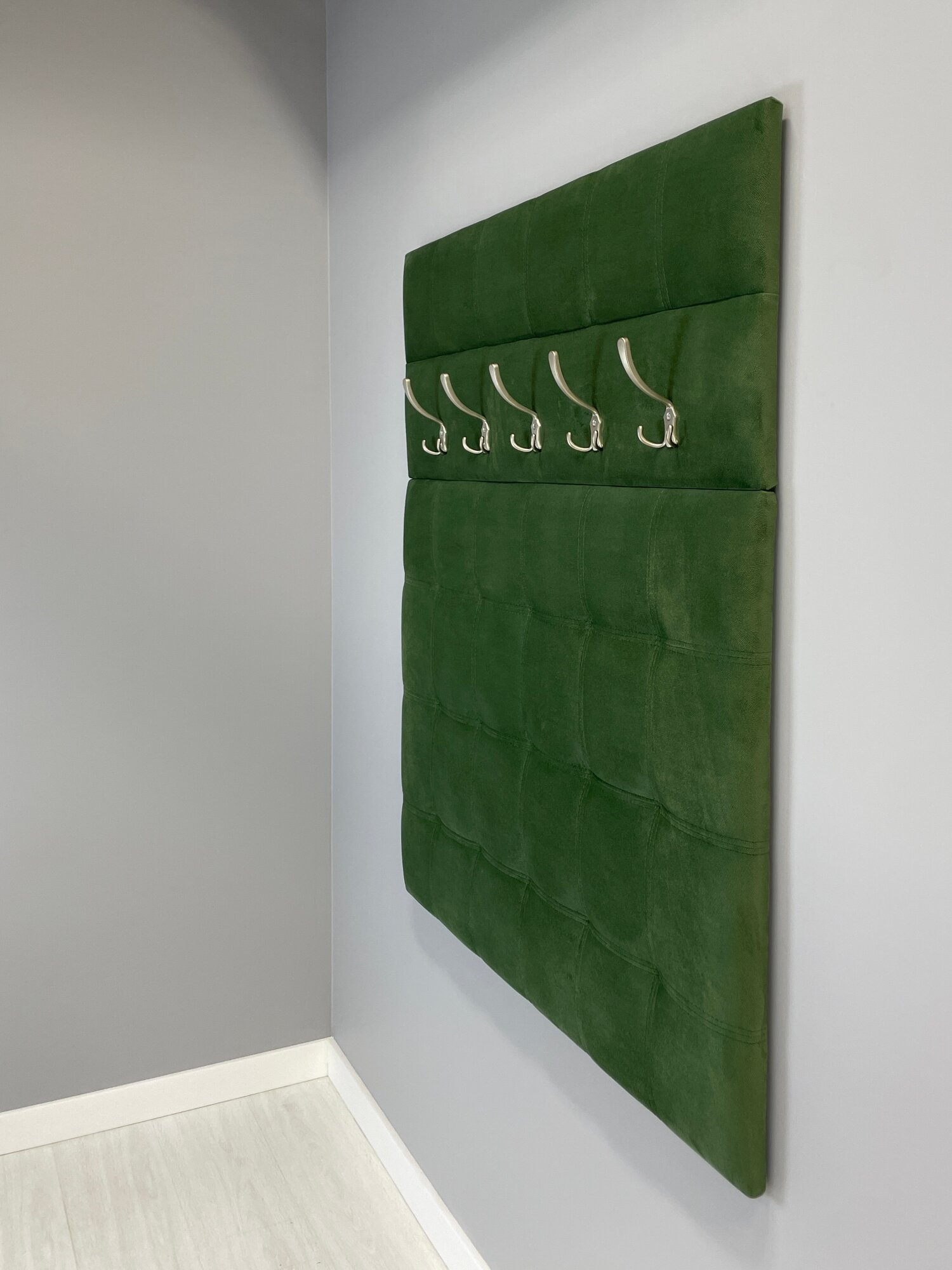 Вешалка настенная для прихожей Лацио 105 (Ткань Микровелюр) выполнена в стиле модерн, с 5 крючками. Поставляется в разобранном виде в картонной упаковке (состоит из 2х элементов, крючки не прикручены). Вешалка настенная для прихожей имеет размеры: ширина 105 см, высота 120 см. Банкетка в комплект не входит и приобретается отдельно. На стену вешалка для одежды крепится с помощью установленных сзади мебельных подвесов . Выполнена из тактильно приятной и мягкой Ткань Микровелюр. Сшита из отдельных элементов и оформлена двойной элегантной строчкой. Вешалка в прихожую настенная идеально подойдет к банкеткам из нашей коллекции. Банкетки с вешалками изготовлены из одного и того же материала. Цвет идентичен. Вешалка настенная идеально подойдет для прихожей, для апартаментов, для дачи.