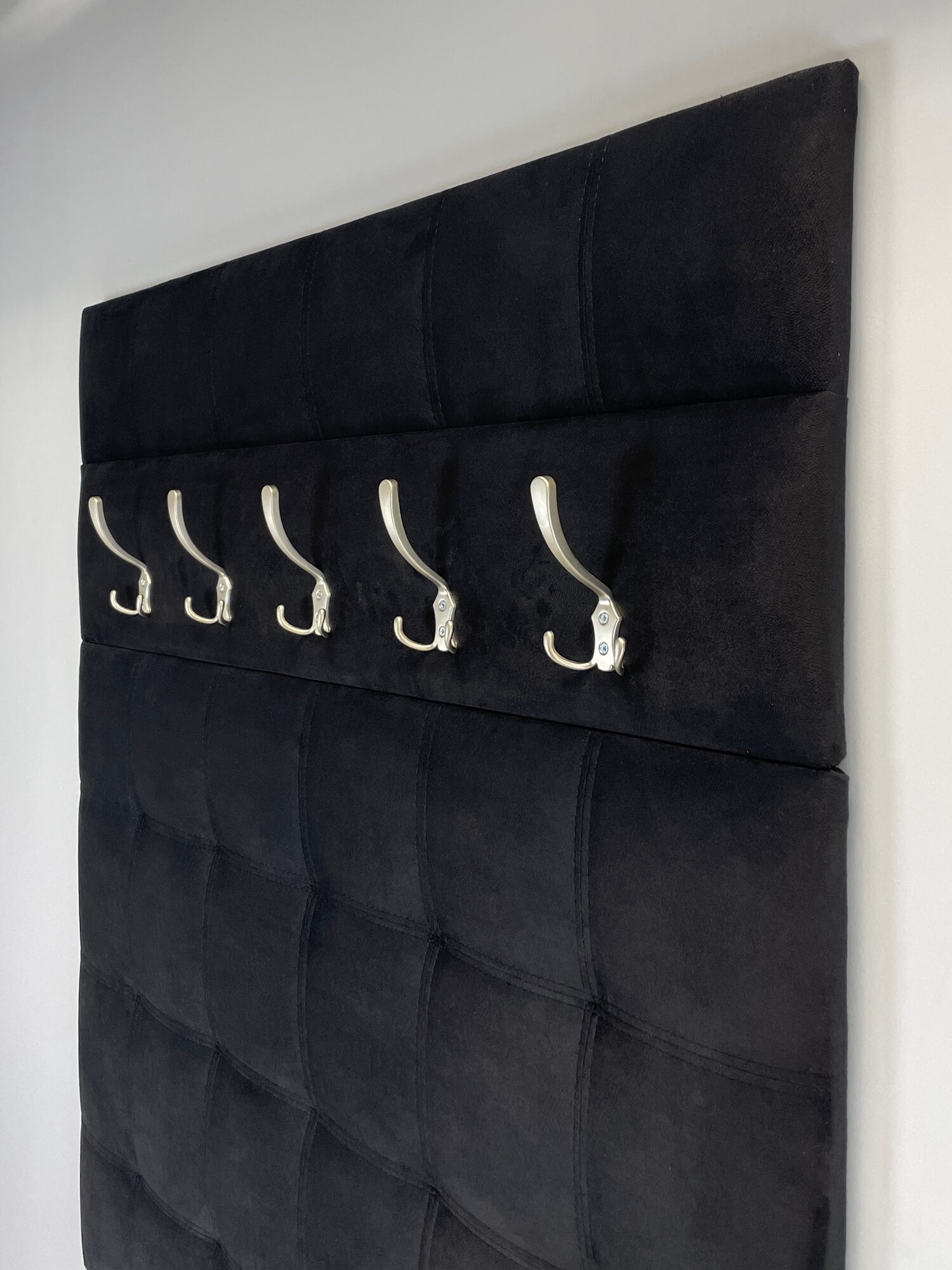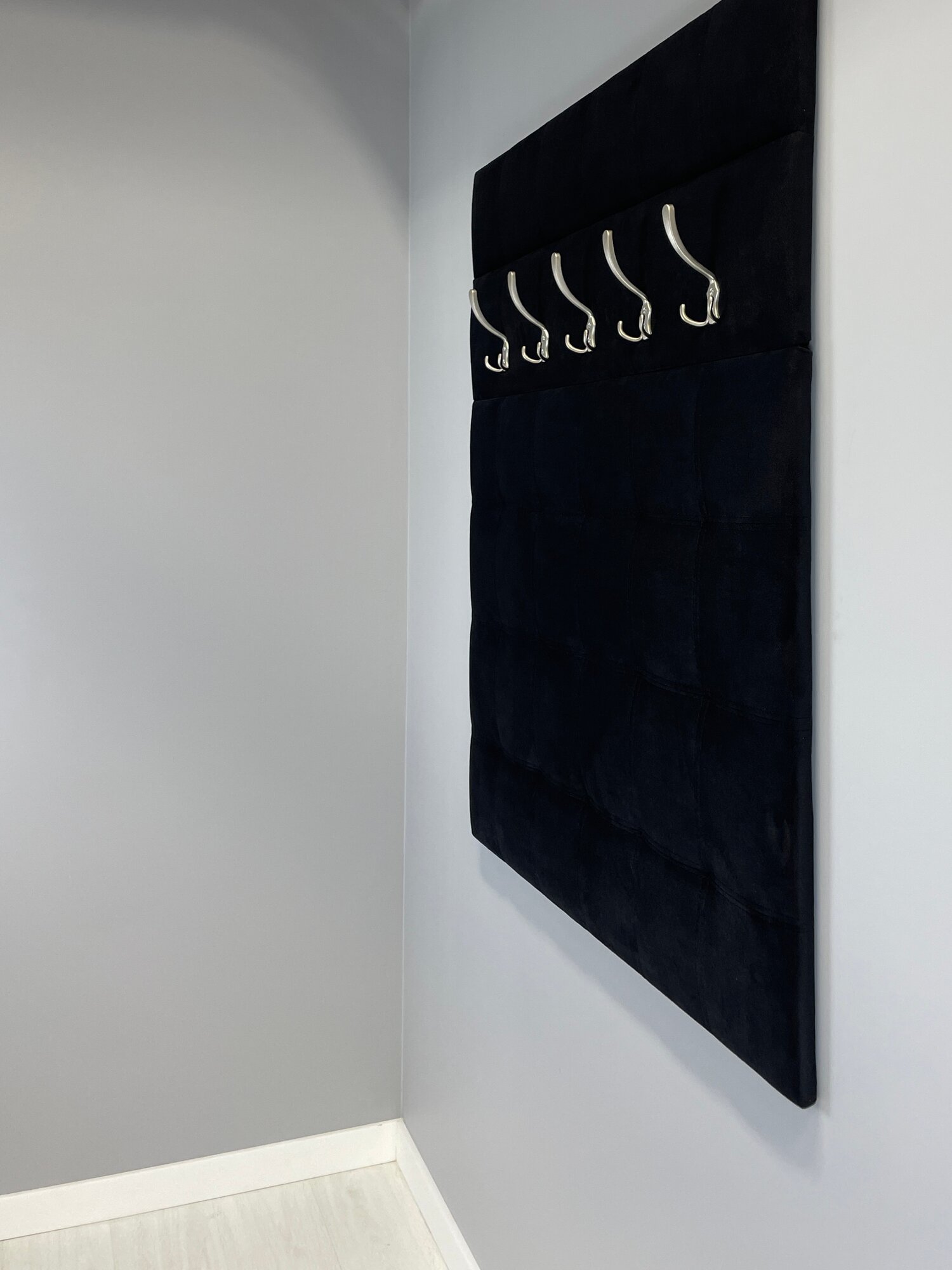 Вешалка настенная для прихожей Лацио 105 (Ткань Микровелюр) выполнена в стиле модерн, с 5 крючками. Поставляется в разобранном виде в картонной упаковке (состоит из 2х элементов, крючки не прикручены). Вешалка настенная для прихожей имеет размеры: ширина 105 см, высота 120 см. Банкетка в комплект не входит и приобретается отдельно. На стену вешалка для одежды крепится с помощью установленных сзади мебельных подвесов . Выполнена из тактильно приятной и мягкой Ткань Микровелюр. Сшита из отдельных элементов и оформлена двойной элегантной строчкой. Вешалка в прихожую настенная идеально подойдет к банкеткам из нашей коллекции. Банкетки с вешалками изготовлены из одного и того же материала. Цвет идентичен. Вешалка настенная идеально подойдет для прихожей, для апартаментов, для дачи.