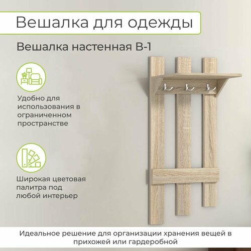 Вешалка настенная BONMEBEL В-1, вешалка навесная ЛДСП дуб сонома, 49х110х25: сравнение цен, характеристики, фото, актуальное наличие и цены.