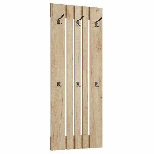 Размеры модуля (ш/в/г) в мм: 600х1460х32 Цвет: дуб крафт золотой Количество крючков: сверху- 3 трёхрожковых, снизу - 3 двухрожковых Материал: ЛДСП 16 мм Вешалка Эмилия ЭЛ-07 компактна и функциональна, поэтому органично дополнит любой интерьер вашей прихожей. Вешалка состоит из нескольких объединенных панелей ЛДСП, благодаря чему на ней можно с легкостью разместить верхнюю одежду нескольких человек. Крючки металлические, максимальная допустимая нагрузка до 15 кг на один крючок. Сочетая вешалку с другими модулями из коллекции Эмилия, вы можете создать стильную и лаконичную прихожую у себя дома. Для установки в вешалку встроен аккуратный подвес с регулировкой по высоте. Благодаря широким отверстиям вешалку легко установить на стену и отрегулировать. Мебель доставляется в разобранном виде, в усиленной упаковке.