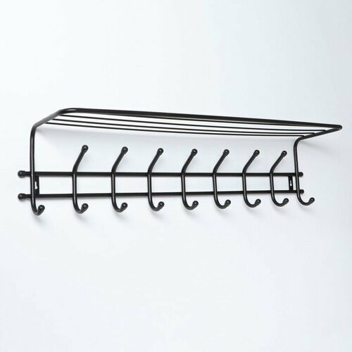 Вешалка настенная с полкой «Комфорт», 9 крючков, цвет чёрный. Цвет - Чёрный; Количество крючков - 9; Цвет - Чёрный; Материал - Металл; Вид установки - Настенный; С полочкой - Да;