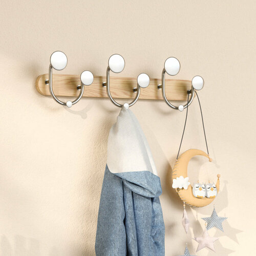 Melody 9 – нетривиальный подход к проблеме хранения. Это не просто вешалка, это настоящее украшение вашей прихожей, ванной или гардеробной. Девять крючков причудливой формы позволят удобно развесить куртки, полотенца или повседневные вещи. Сочетание дерева с металлом – стильное и современное решение для любого дома.