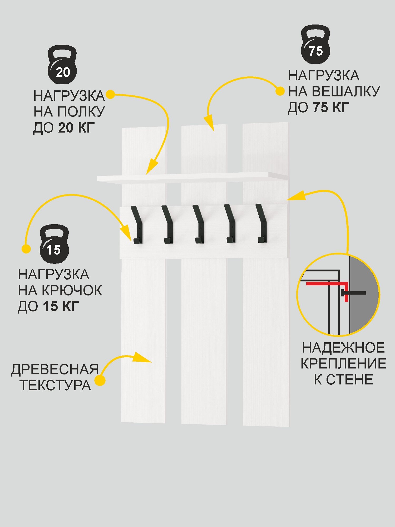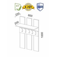 Вешалка настенная в прихожую 60 см с полкой 5 крючков Ника 1 (01) Белый шпон: сравнение цен, характеристики, фото, актуальное наличие и цены.