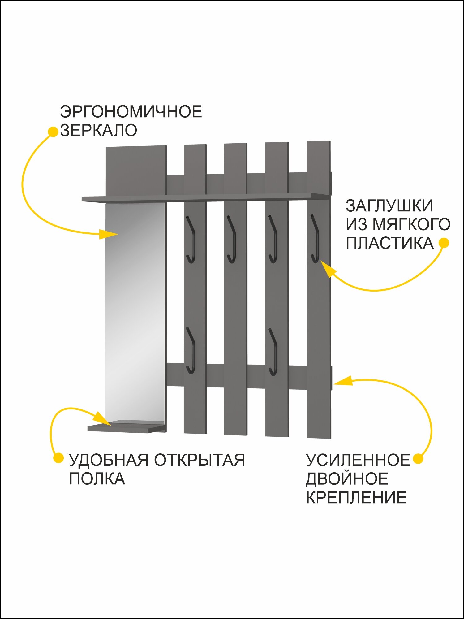 Вешалка настенная в прихожую 83 см с зеркалом 6 крючков Лана 15 (02) Оникс: сравнение цен, характеристики, фото, актуальное наличие и цены.
