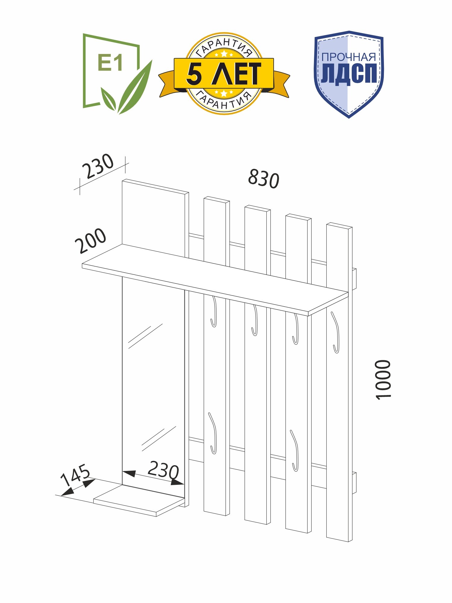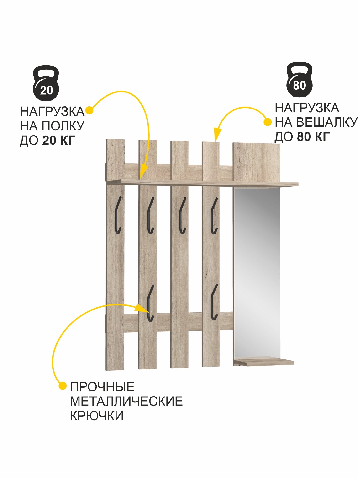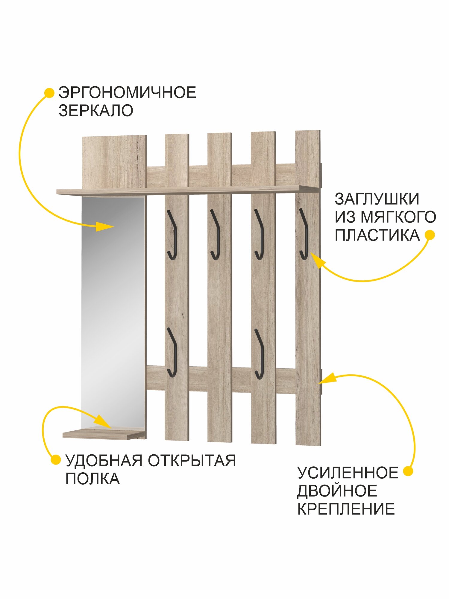 Вешалка настенная в прихожую 83 см с зеркалом 6 крючков Лана 15 (03) Дуб Кронберг: сравнение цен, характеристики, фото, актуальное наличие и цены.