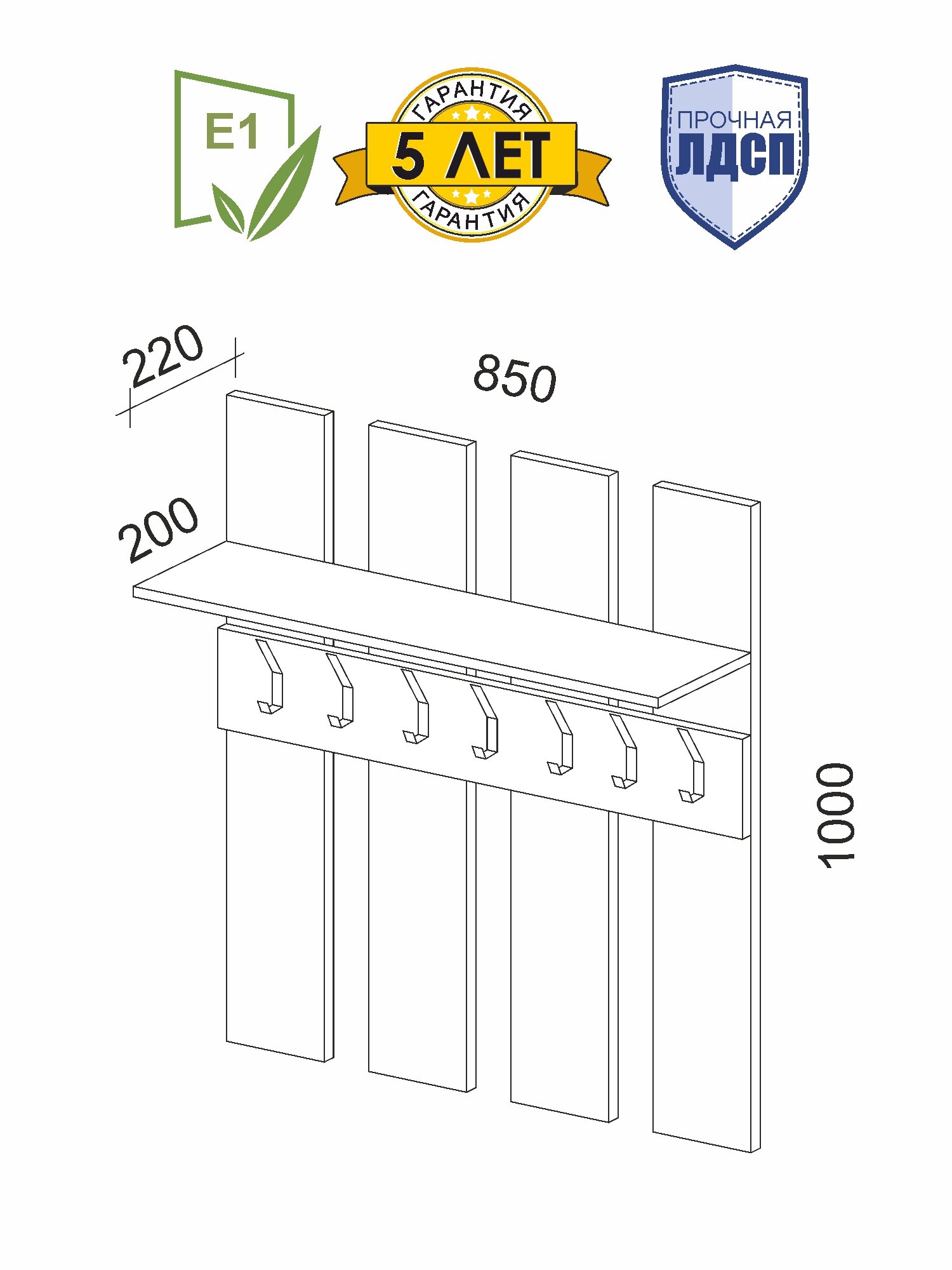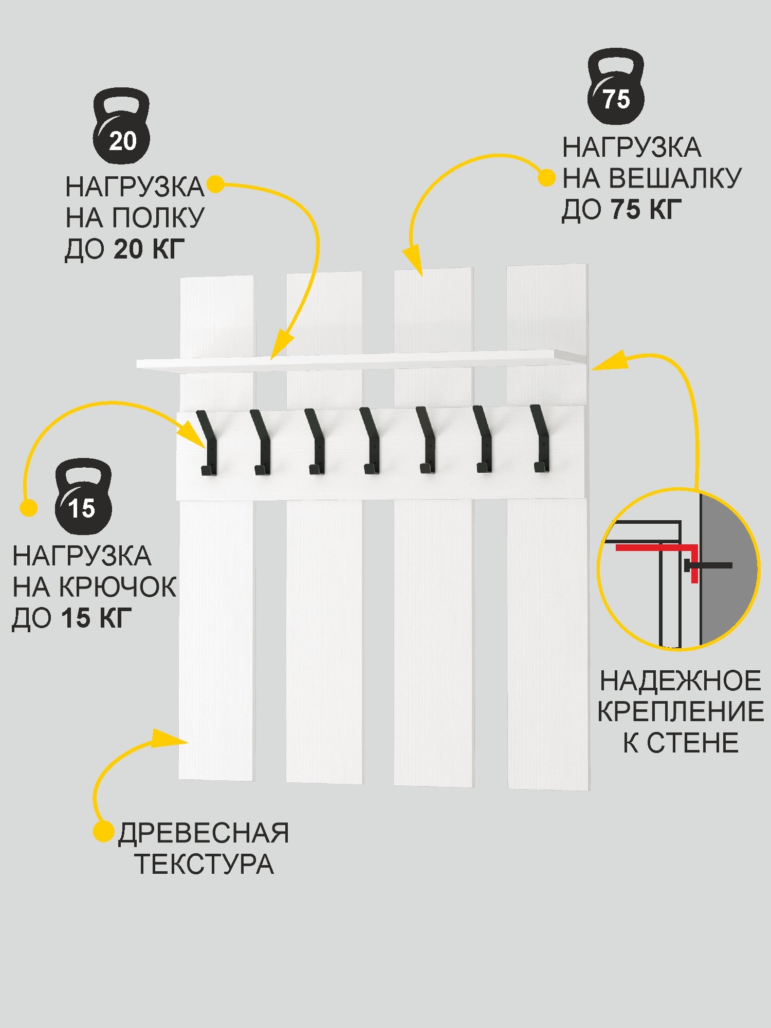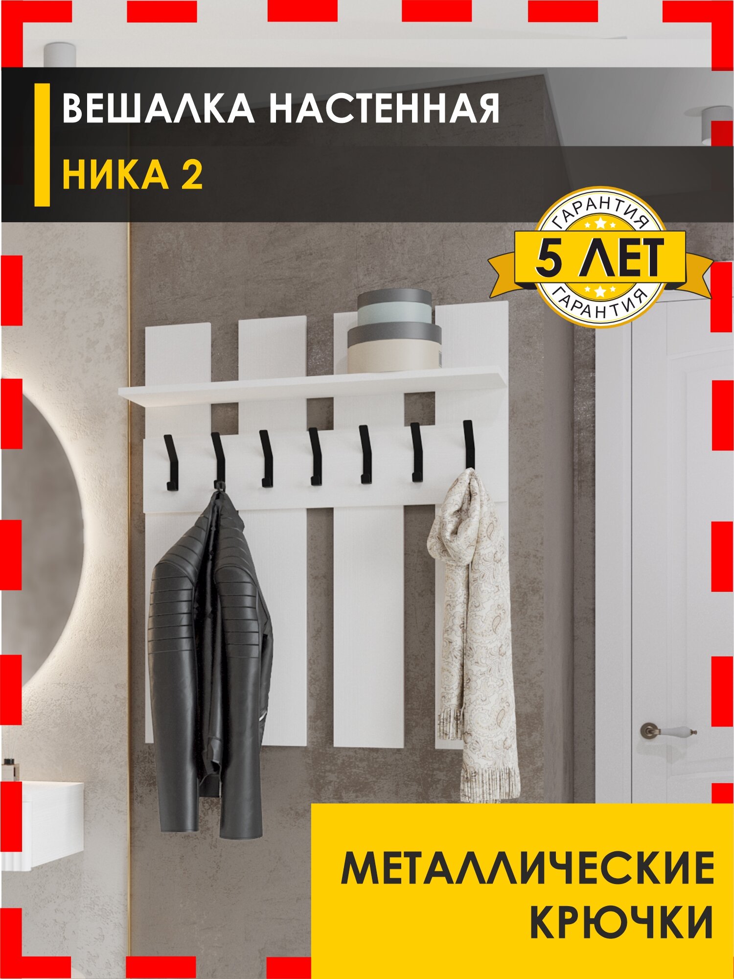 Вешалка настенная в прихожую 85 см с полкой 7 крючков Ника 2 (01) Белый шпон: сравнение цен, характеристики, фото, актуальное наличие и цены.