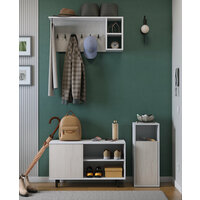 Вешалка настенная Крафт Макси Лайт. Красивая и стильная вешалка в прихожую поможет разместить Ваш гардероб. Вешалка изготовлена из модного цвета ЛДСП - Кадена лайт в сочетание с белым цветом. Вешалка комплектуется 6 прочными мебельными крючками из abs-пластика черного цвета. У вешалки имеются 2 полки, а также дополнительное черное вешало-рейл, на котором можно разместить вешалки-плечики для пальто, пиджака, плаща. Также повесить на них шарф или зонт. Можно использовать в гардеробной комнате. Поставляется в разобранном виде, возможность скрытого крепления к стене. Простая сборка займет не более 10 минут. Произведено в России.