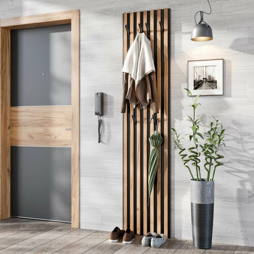 Вешалка выполнена из прочных и надежных материалов, что обеспечивает ее долговечность и устойчивость к внешним воздействиям. Стеновая панель предлагает возможность крепления к стене, что позволяет экономить место в прихожей и делает возможным использование даже в самых тесных помещениях. Это решение идеально подходит для городских квартир, а также для загородных домов, придавая им особый шарм.