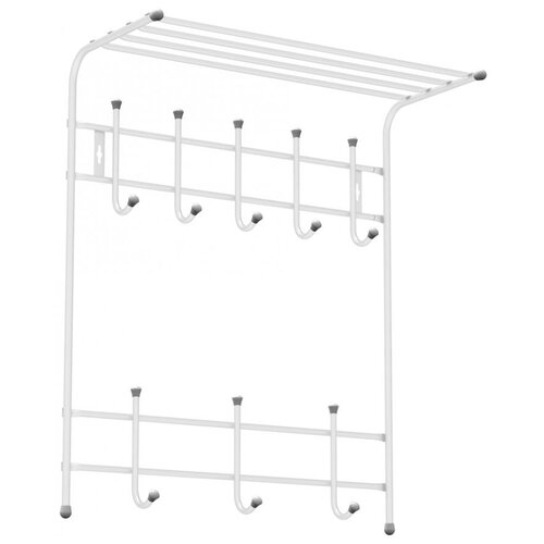Вешалка для одежды двухъярусная с полкой Nika (Ника) ВПТ8/Б выполнена из металлической трубы с порошковым покрытием устойчивым к механическим воздействиям. Металлические трубки оснащены пластиковыми заглушками серого цвета. Нижний ярус крючков удобно использовать для размещения сумок, зонтов, а также детской одежды. Максимальная распределенная статическая нагрузка на крючок - 5 кг. При монтаже вешалки потребуются различные крепежные приспособления, в зависимости от вида стен (крепеж приобретается отдельно).