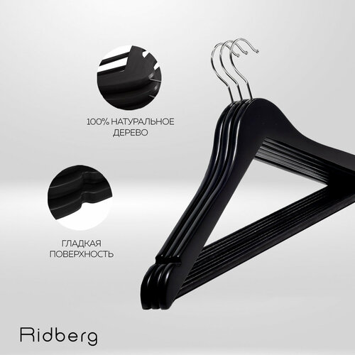 Вешалки Ridberg выполнены в классическом черном цвете, который легко впишется в любой интерьер и будет гармонично сочетаться с одеждой разных цветов и стилей.