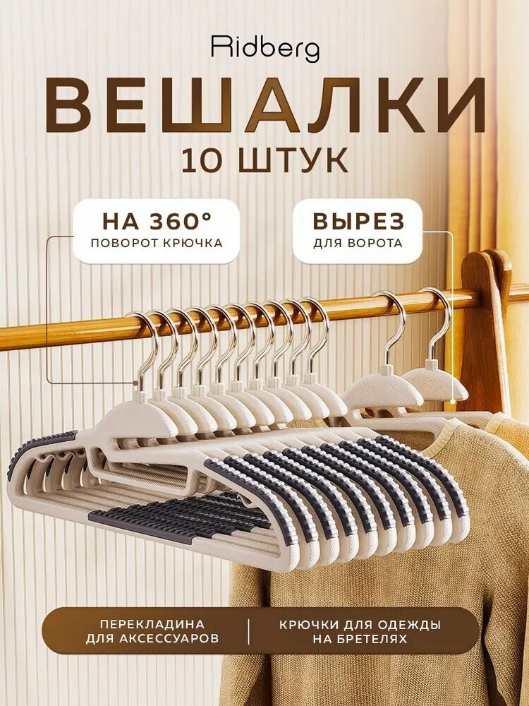 Вешалки-плечики для одежды Ridberg с блёстками это идеальное сочетание стиля и функциональности, которое придаст вашему гардеробу изысканный и блестящий вид. Эти пластиковые вешалки, украшенные блёстками, не только украшают пространство, но и обеспечивают надёжное хранение для всех видов одежды благодаря своим многочисленным преимуществам. С антискользящим покрытием, эти вешалки гарантируют, что ваша одежда будет оставаться на месте, даже если шкаф активно используется. Прочный материал предотвращает образование заломов и зацепок, что делает их подходящими для хранения как лёгких блузок, так и тяжёлых комплектов.