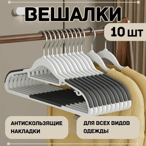 Набор из 10 прочных пластиковых вешалок для одежды со специальным резиновым покрытием. Такое антискользящее покрытие плечиков для одежды не дает одежде скользить по вешалке. Классическая форма тремпеля с перекладиной для брюк и выемкой для вещей с бретельками позволяет использовать вешалку практически для любой одежды. Благодаря плоской форме вешалки не занимают много места в гардеробе. Это позволяет значительно сэкономить место в шкафу в спальне или прихожей. Набор универсальных плечиков - идеальное решение для хранения ваших любимых футболок костюмов курток платьев или пиджаков. Крючки для вешалки полностью изготовлены из осветленного цинка, и в отличие от аналогов (хромированная сталь) не будут облупливаться со временем. Вешалки плечики антискользящие изготовлены из прочного ABS-пластика и подойдут для хранения любой одежды, в том числе для верхней. Плечики для одежды широкие и подойдут как для взрослой так и для подростковой детской одежды и станут отличным подарком для Вас или Ваших близких. Храните свою одежду в лучшем виде с нашими превосходными вешалками для одежды! Вы не пожалеете о данной покупке и будете радоваться каждый раз, когда откроете Ваш шкаф. Не упустите возможность приобрести качественное решение для Вашего гардероба прямо сейчас!