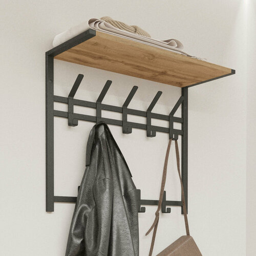 Вешалка с полкой ЗМИ ВСПТ22Б Торонто-22Д, черныйНастенная вешалка с полкой в стиле лофт Торонто 22Д - это идеальное решение для создания функционального пространства в вашей прихожей или гардеробной. Эта модель прекрасно впишется в любой интерьер в стиле лофт, добавляя нотку современности и оригинальности. Она обладает всеми необходимыми качествами для удобного хранения одежды и аксессуаров. На деревянной полке можно разместить головные уборы, шарфы или свои любимые предметы. Это удобное дополнение, которое поможет вам организовать пространство и добавить характер вашему интерьеру.9 двойных стильных крючков позволят вам подвесить одежду, шапки или сумки, удобно расположив их для быстрого доступа. Каркас изготовлен из металлической трубы, что делает такую мебель долговечной и прочной, способной выдерживать значительную нагрузку. Настенная вешалка с полкой в стиле лофт Торонто 22Д идеально подходит для организации пространства в вашем коридоре или гардеробной. Продается напрямую от производителя ЗМИ, что гарантирует высокое качество изделия. Изделие поставляется в разобранном виде в картонной коробке с ручкой, за которую удобно донести покупку с пункта выдачи до дома или вручить ее в качестве подарка. Сборка осуществляется по понятной схеме. Для этого в комплекте есть инструмент и вся необходимая фурнитура. Закажите настенную вешалку с полкой в стиле лофт Торонто 22Д прямо сейчас и получите стильное и функциональное решение для хранения одежды и аксессуаров в вашем интерьере. Назначение - Для размещения одеждыМатериал - Сталь, полимерно-порошковое покрытие, пластик, лдспиндивидуальная упаковка - 71 х 27,7 х 10,9 смГабариты (Д*Ш*В) - 67 х 27 х 51,5 смВес Нетто - 4,3 кгВес Брутто - 4,7 кгОбъем 1 шт. - 0,021 м³Материал упаковки - ГофрокоробСтрана производитель - РоссияМаксимальная нагрузка, кг - до 7 кг на крючокУход - Протереть влажной тряпочкой с мыльным средствомТемпература применения, °C - от 0 °C до +30 °CТемпература хранения, °C - от -30 °C °C до +30 °