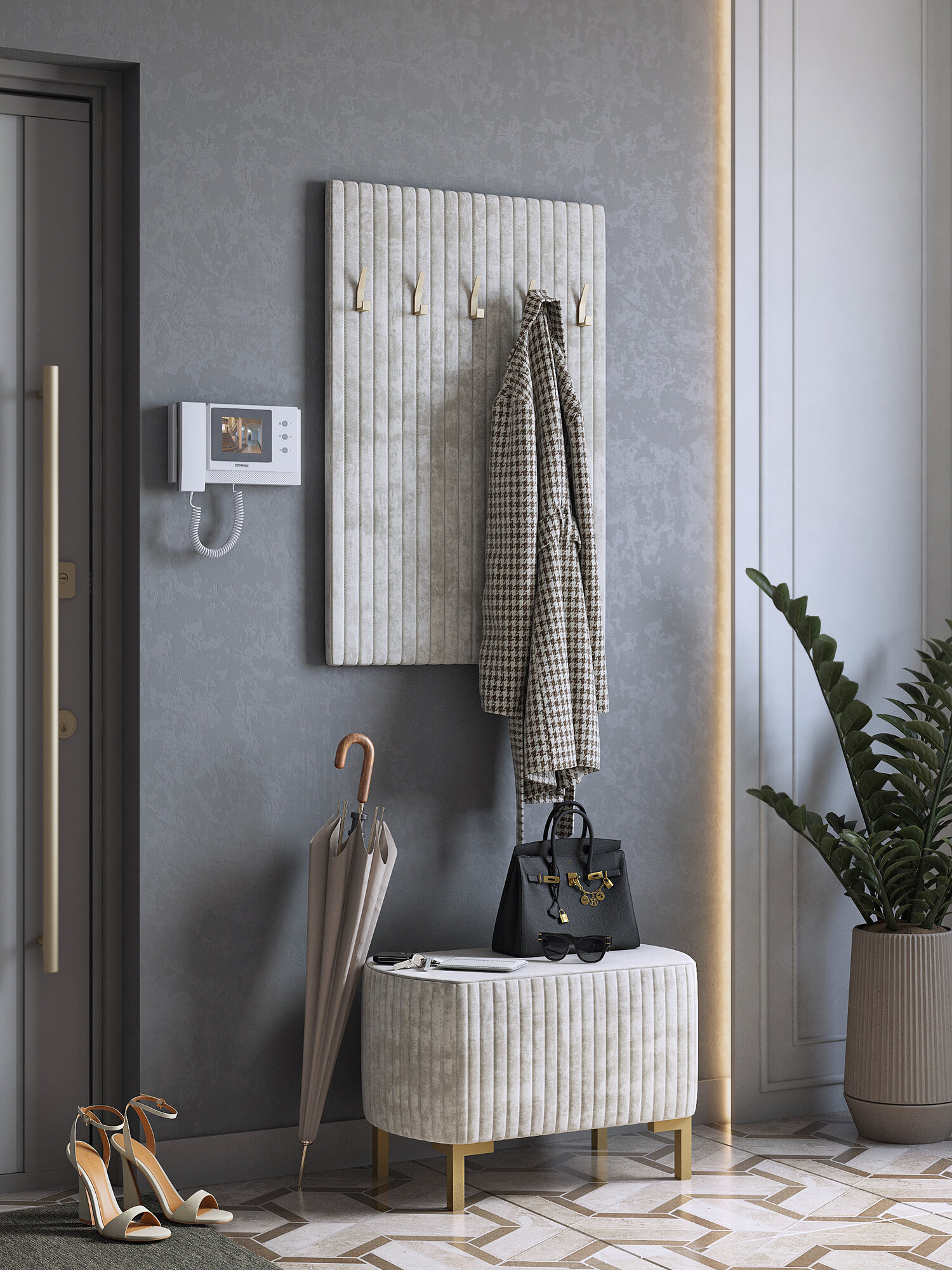 Мягкая вешалка в прихожую настенная, из велюра, с золотыми крючками, цвет Бежевый/золотой: сравнение цен, характеристики, фото, актуальное наличие и цены.