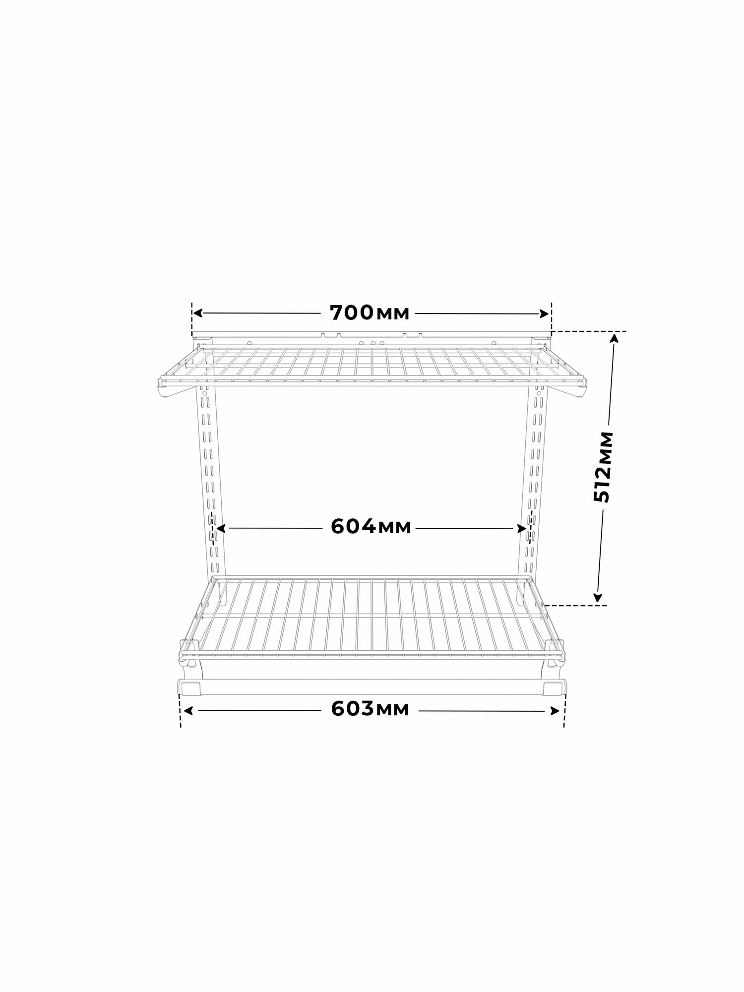 | Подробная комплектация | Комплект заглушек для перекладины – 1 шт Кронштейн для перекладины – 2 шт Кронштейн для полки 435 мм – 4 шт Несущий рельс 1000 мм – 1 шт Перекладина для вешалок 940 мм – 1 шт Сеточная полка 903x406 мм – 2 шт Стойка 512 мм – 2 шт Комплект крепежа – 1 шт |