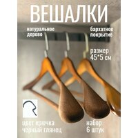 Набор деревянных вешалок для одежды 6 шт, выполненных из качественного дерева и имеющих специальное нескользящее бархатное покрытие.