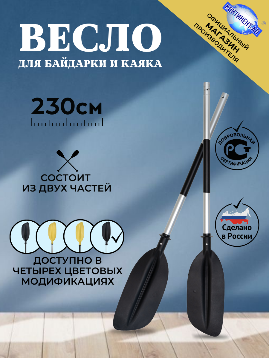 Весло «Континент-ал» для байдарок и каяков длиной 230 см, состоящее из двух секций — отличный вариант для тех, кто любит активный отдых на воде. Благодаря высококачественным материалам и инновационному дизайну, весло обеспечивает максимальную эффективность гребли и комфорт использования. Главное преимущество этих вёсел — их качественное исполнение. Конструкция весла позволяет разделить его на две части, что упрощает транспортировку и хранение. В разобранном виде длина весла составляет 115 см.