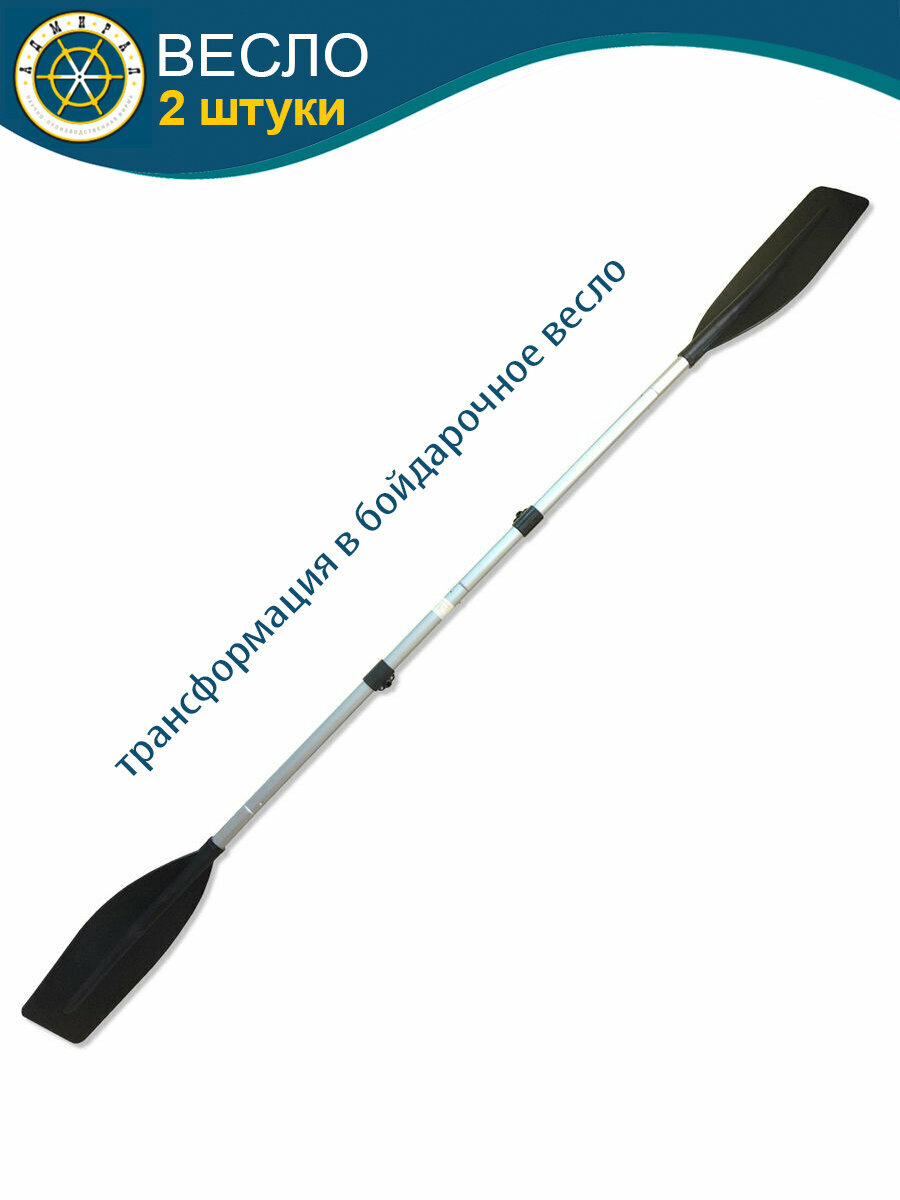 Весло трансформер 1 шт со съёмной лопастью, для лодок ПВХ. Трубка весла изготовлена из алюминиевого сплава с анодированным покрытием. Лопасть весла 485х180 мм, изготовлена из транцевого сырья. Особенности: крепкое, ударопрочное, усиленные ребра жесткости. Разбить такое весло крайне сложно. С помощью заглушек из одного весла получается два полноценных по 136 см длиной.