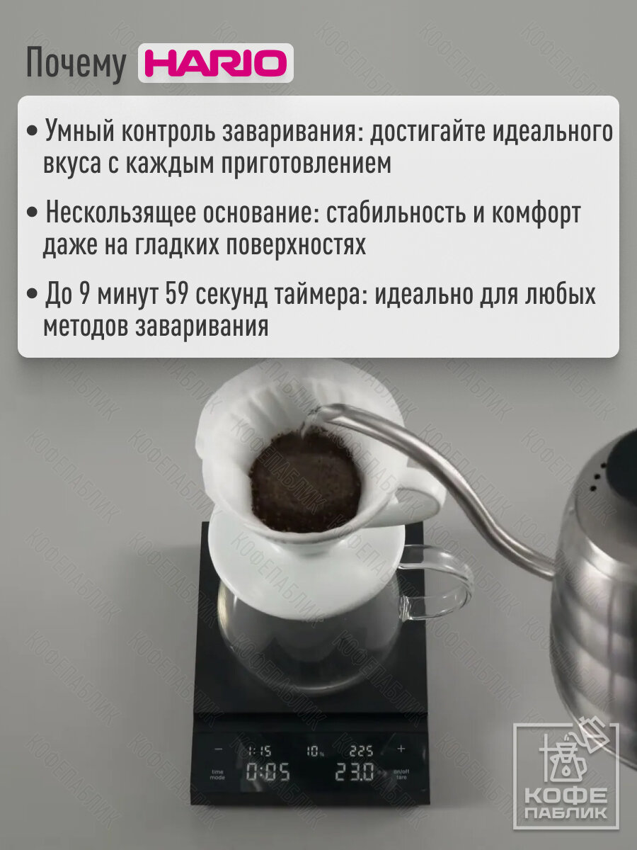 HARIO Coffee Scale Polaris — это умные кухонные весы с таймером для кофе, функцией расчёта коэффициента экстракции и визуализацией процесса заваривания. Эти весы для кофе с таймером помогают точно соблюдать любимый рецепт и экспериментировать с новыми методами заваривания. Инновационная встроенная функция электронных весов для кофе автоматически показывает прогресс экстракции, делая их незаменимыми для бариста.