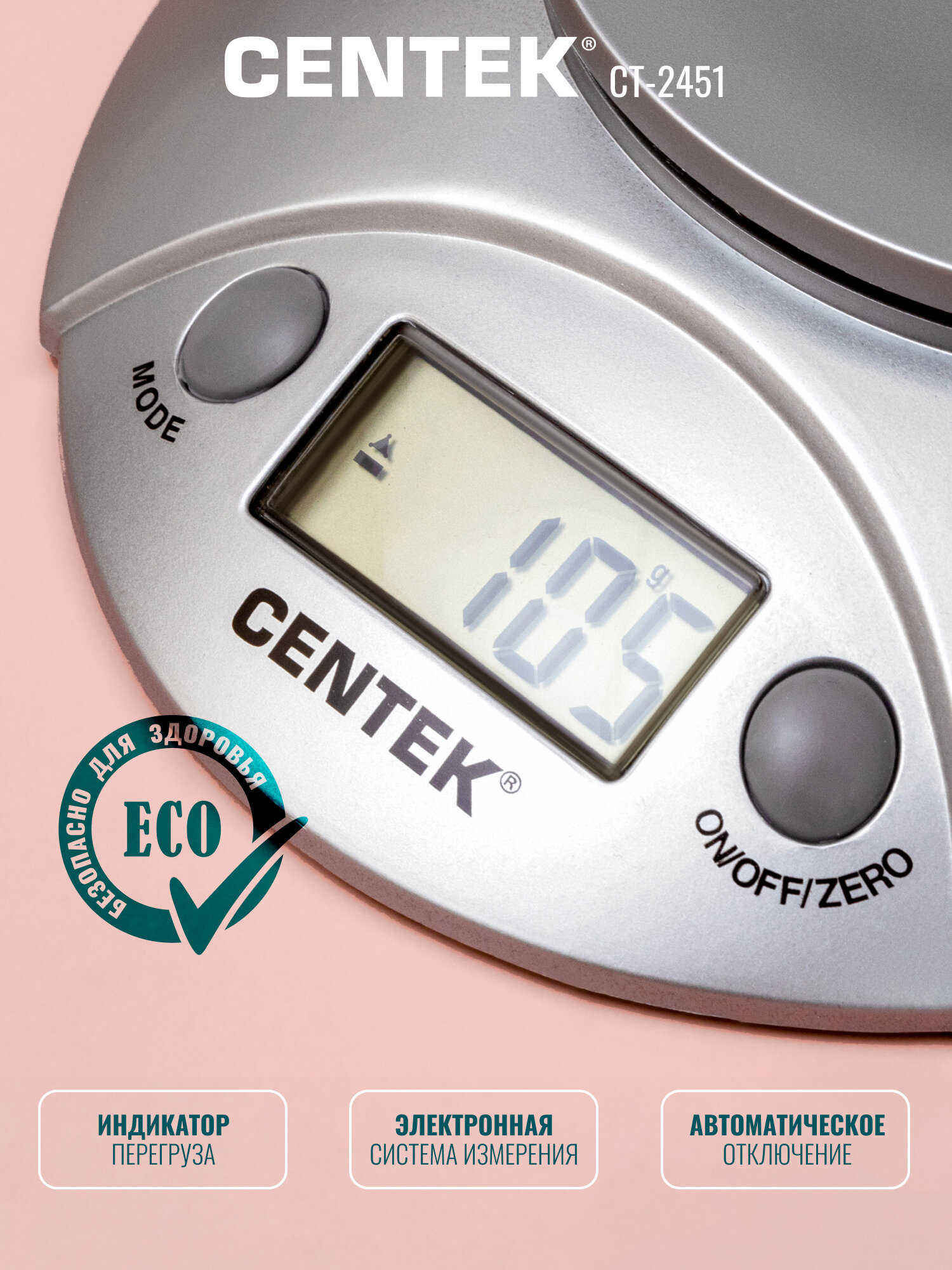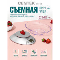 Весы кухонные CENTEK CT-2451: черный/серебро, электронные, чаша пластик, 5кг, шаг 1г, тарирование: сравнение цен, характеристики, фото, актуальное наличие и цены.